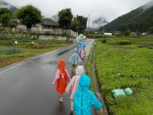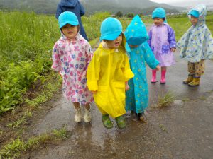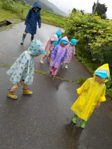 外は、雨が降っていました。子ども達とどんなことをしたいか考えていると「散歩に行きたい」という子ども達。