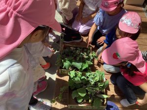 子ども達同士で、何の苗か予想しながら苗を見ている姿も😌