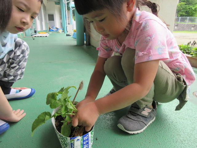 小さい苗や種から生長し、実がなり、大きく育っていく様子を見て、様々な気づきをしてほしい。