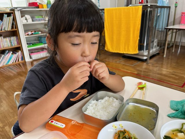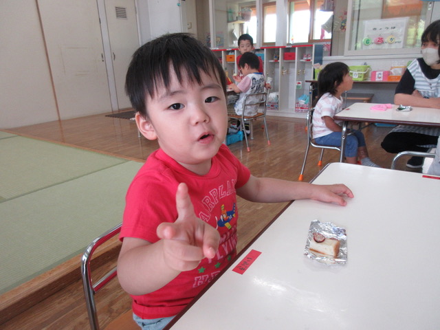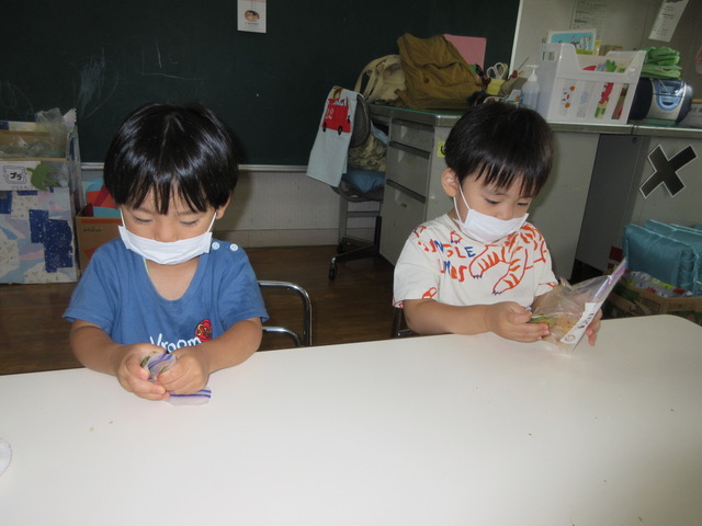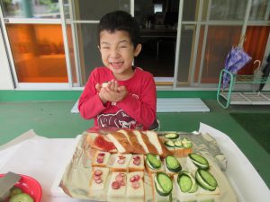 自分たちで歩いて買ったパンに自分たちで育てた野菜だからかとても嬉しそうに食べていました。「おいしい」「おかわりしたい」などそれぞれにうれしそうに話していました。