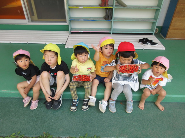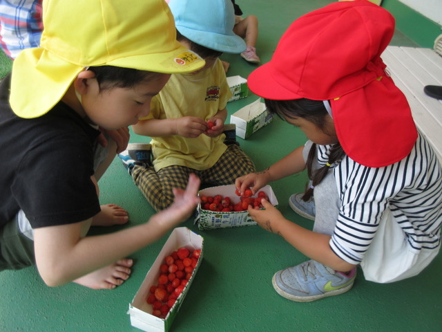 「ヘタってどれ?」教えると「えー!これヘタって言うんだ」と驚いていました。