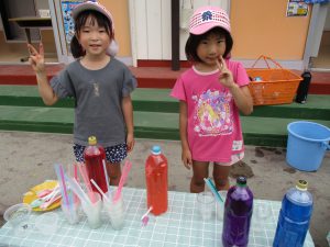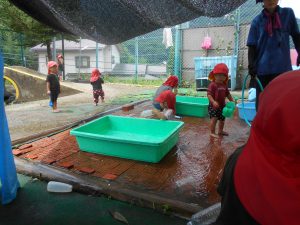 片付けの後は、気温が上がってきたので水遊びも楽しみました。こちらも夏ならではで楽しいですね!!