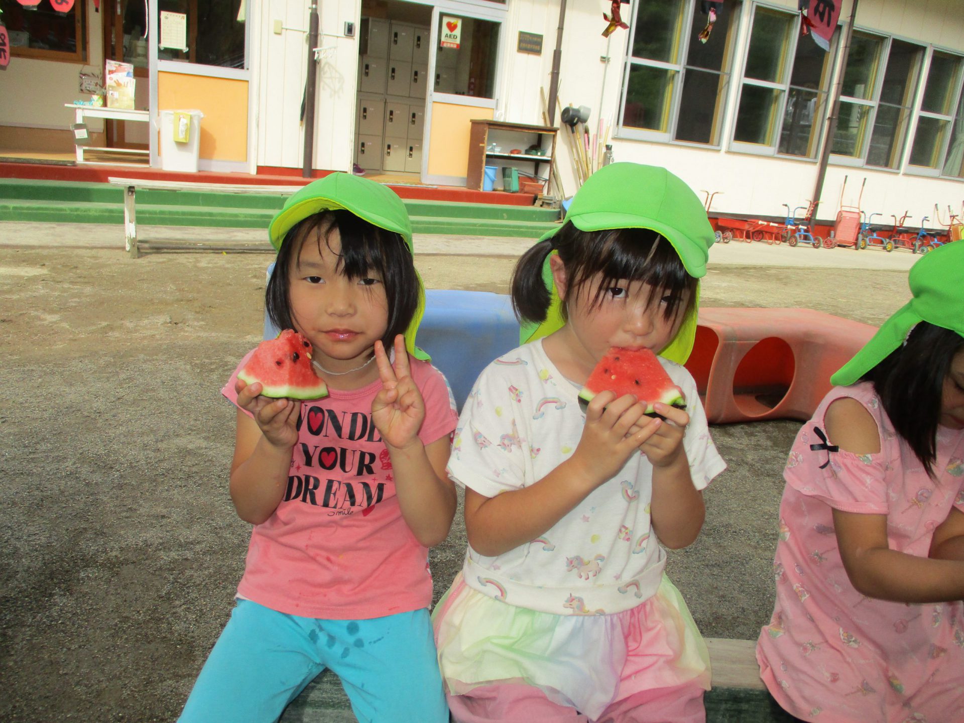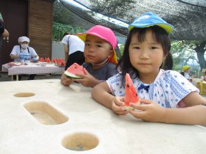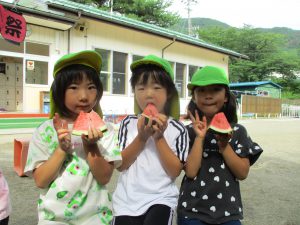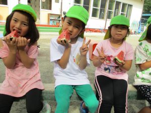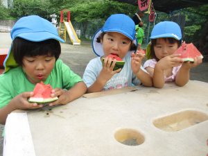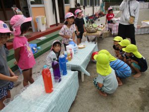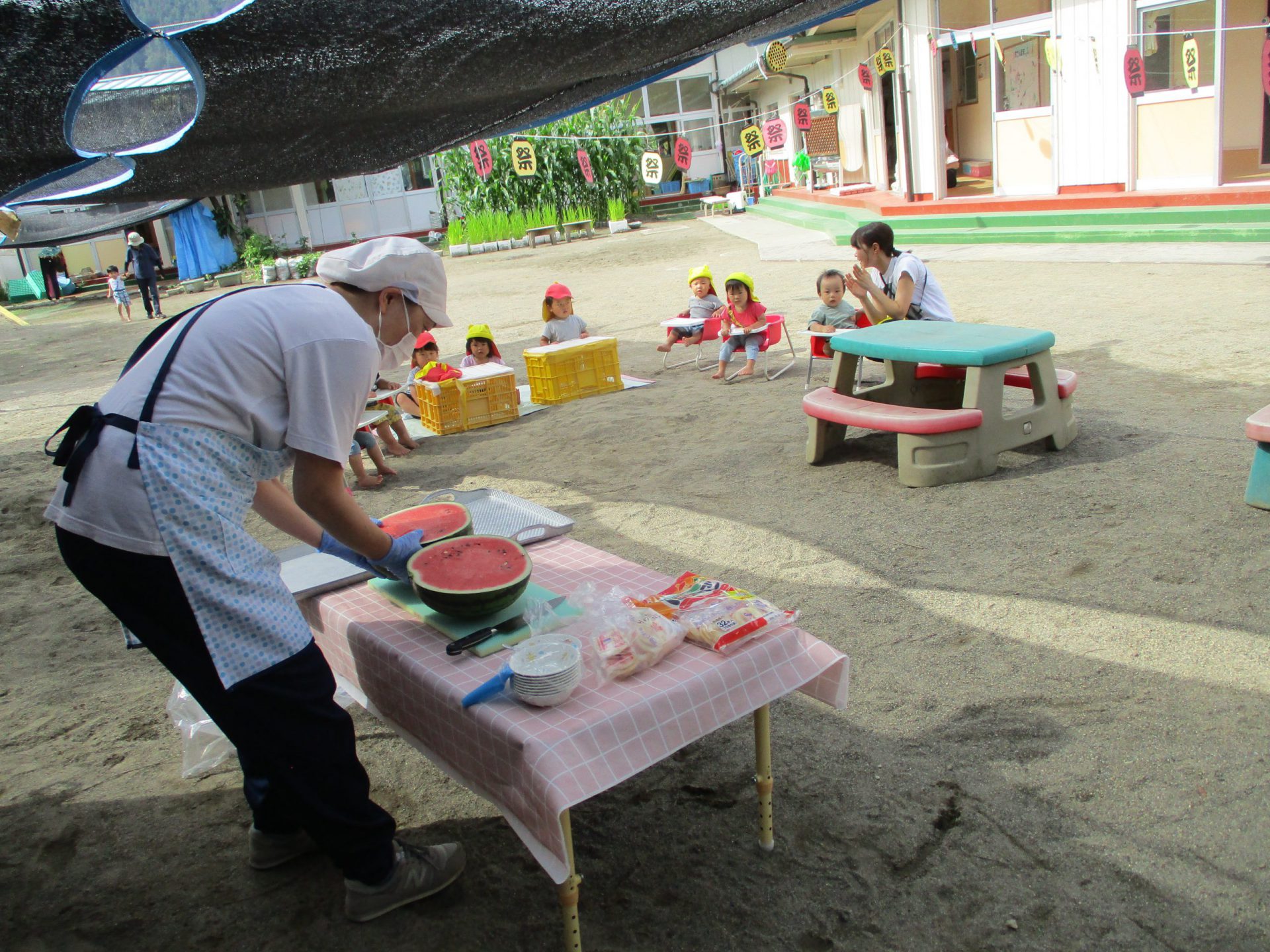 ・夏まつりの後にプール遊びができたり、全園児が園庭でおやつを食べられたりでき、よい思い出になったと思う。