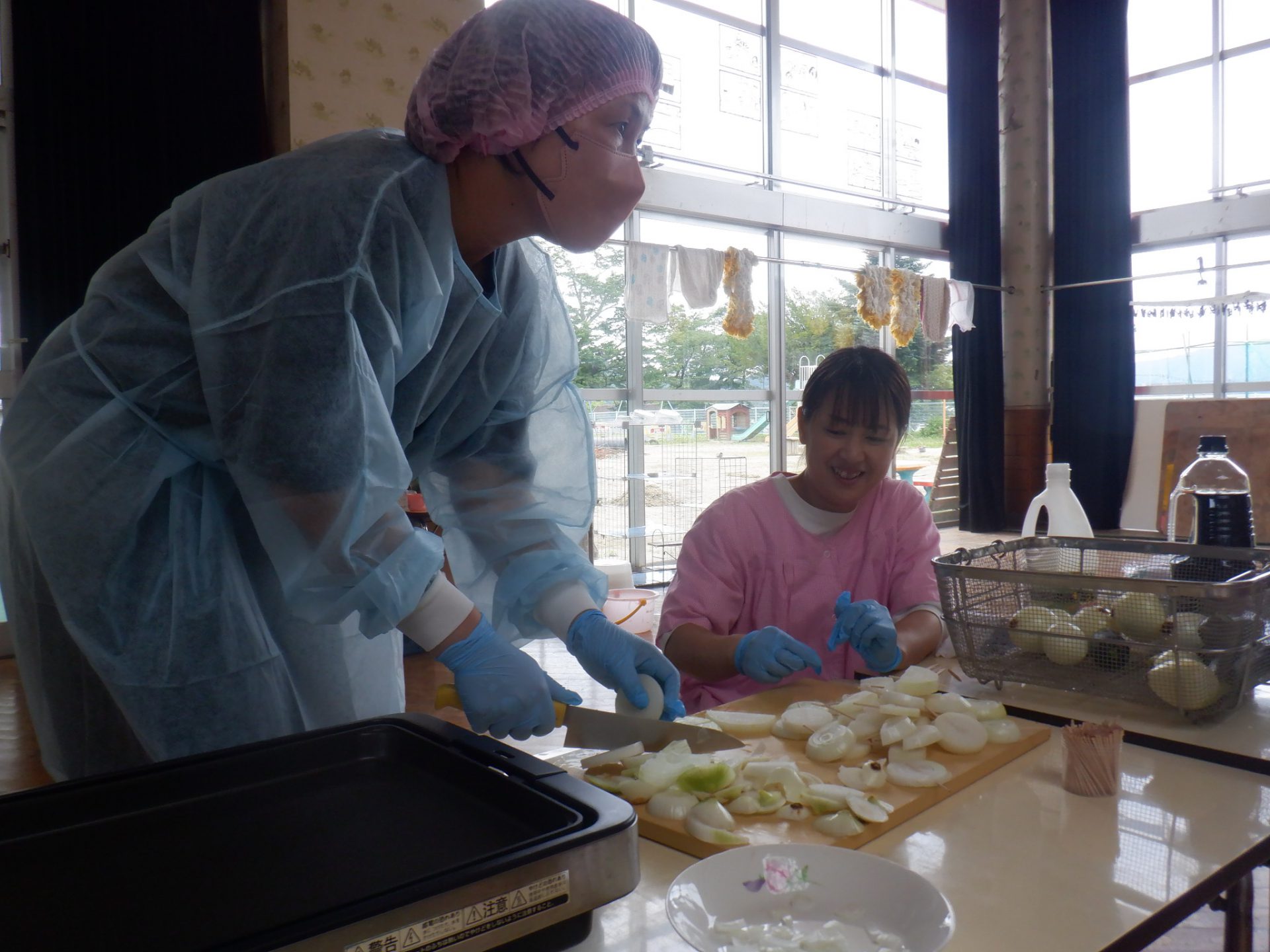 園長先生が玉ねぎをカットしてホットプレートで焼いてくれます。