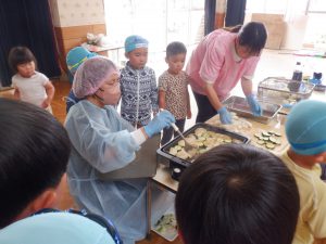 「おいしいね。」「もっと食べたい。」玉ねぎ好きじゃないと言っていたお友だちもおかわりして食べています。