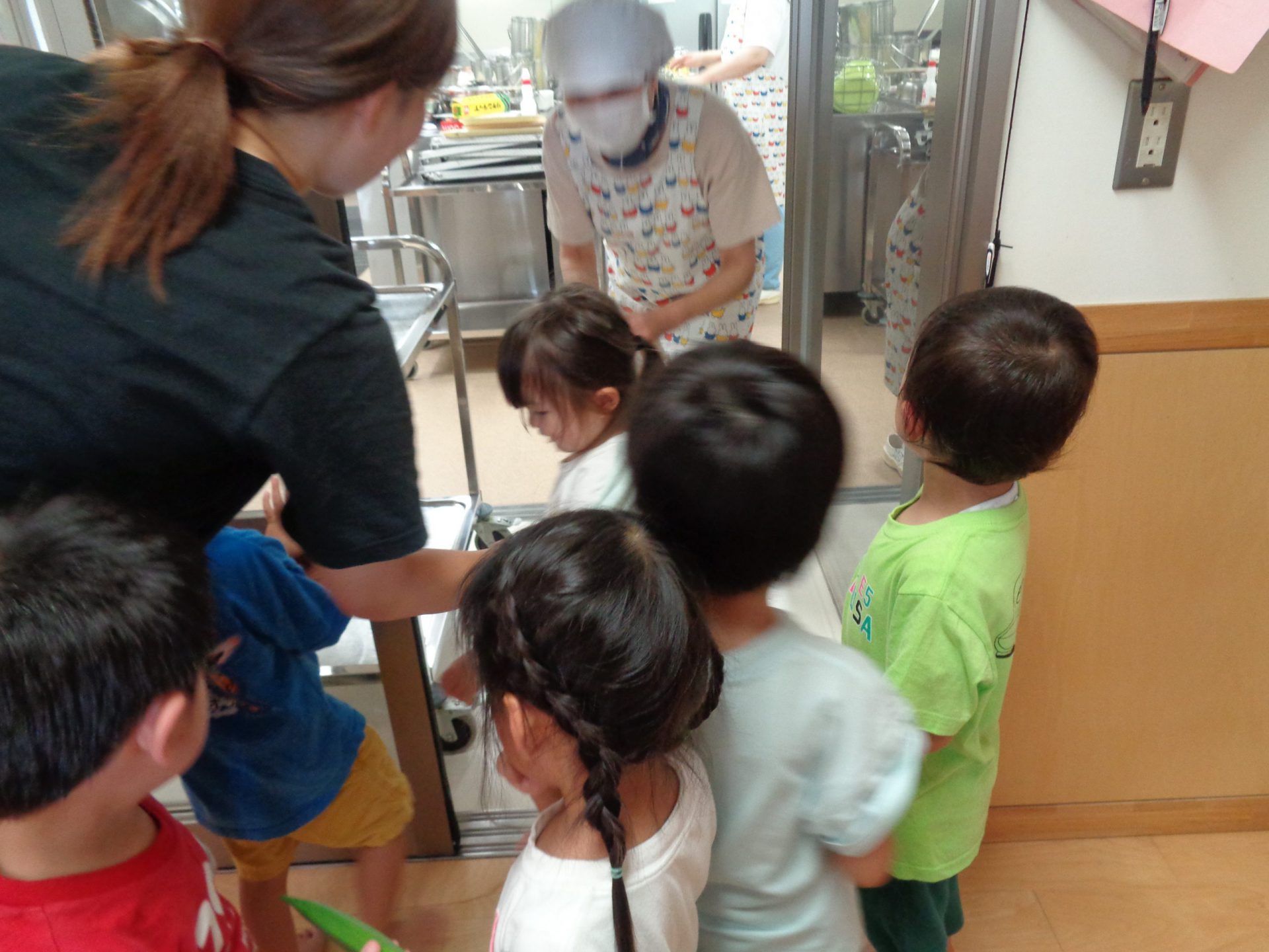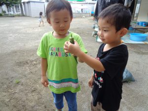 その他にも給食先生に野菜の切れ端をもらいオクラと一緒に