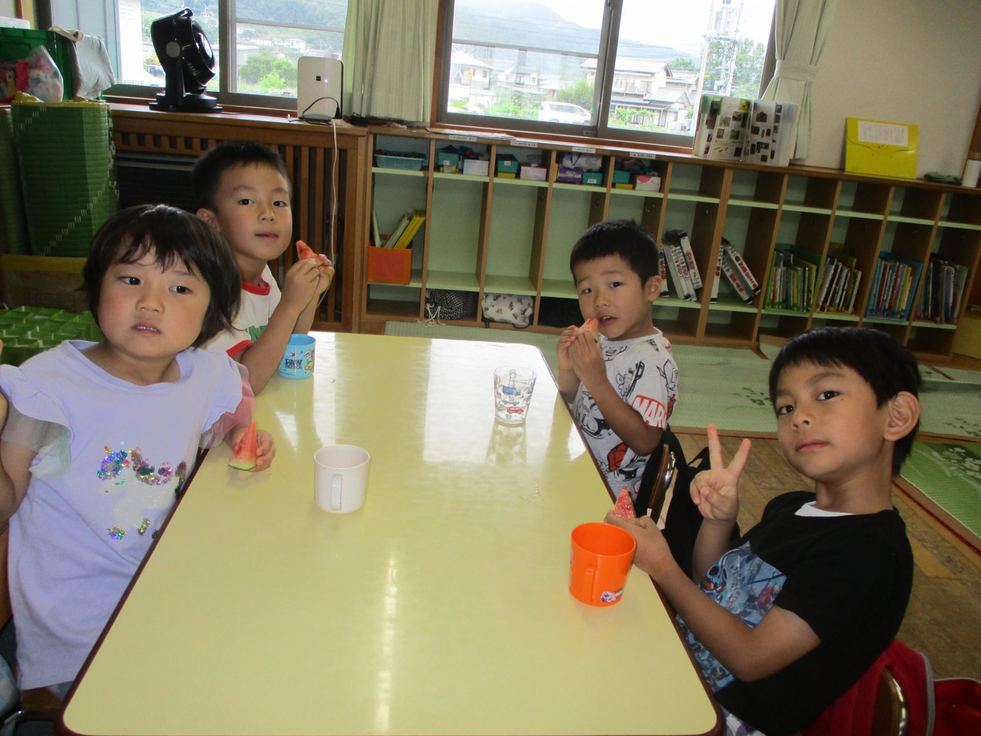 スイカを食べることを楽しみにしていた子どもたちは、いつもより良い目覚めでした。