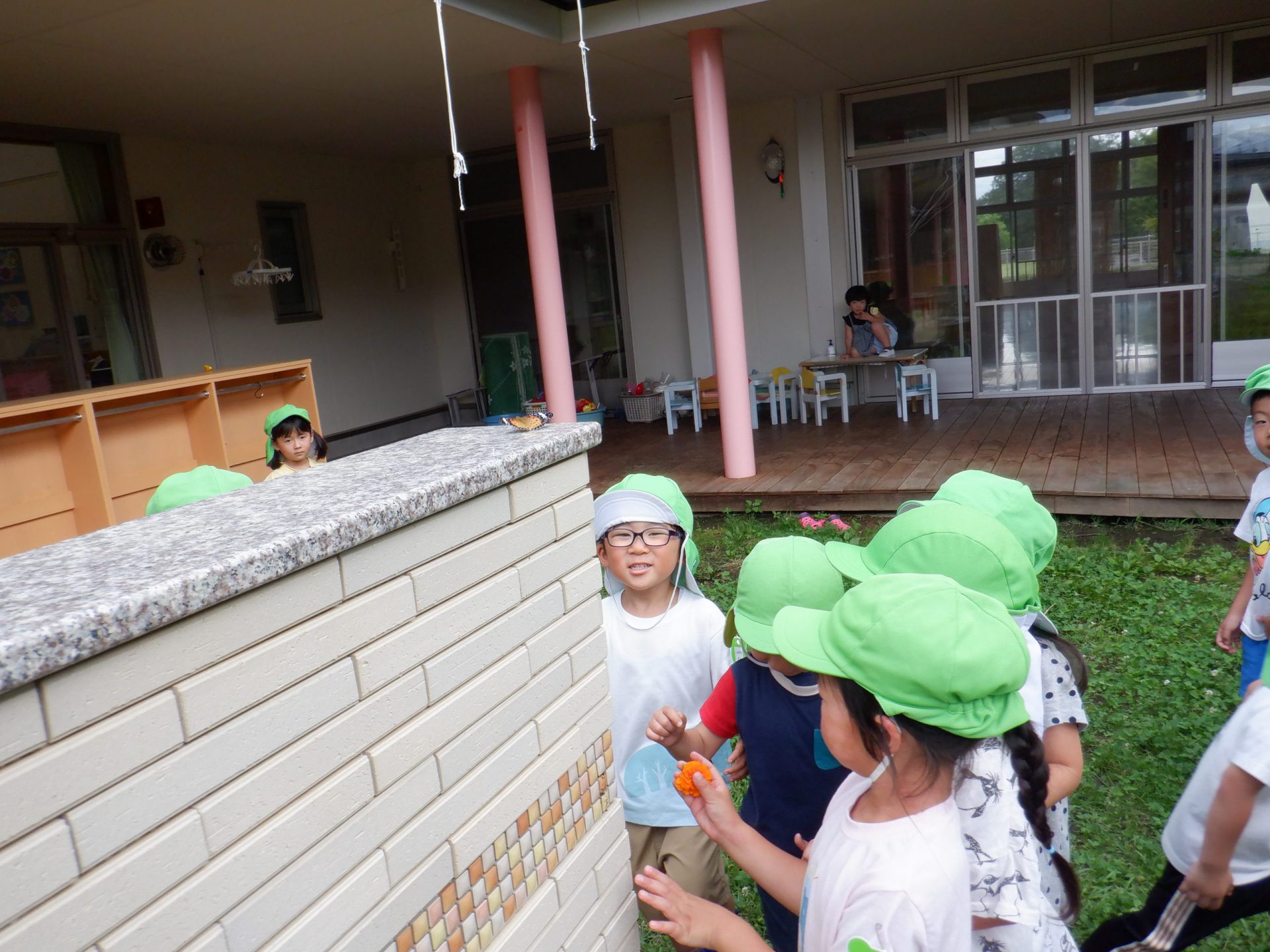 「ここだとせまいから逃してあげよう」と園庭へ逃してあげることにしました。
