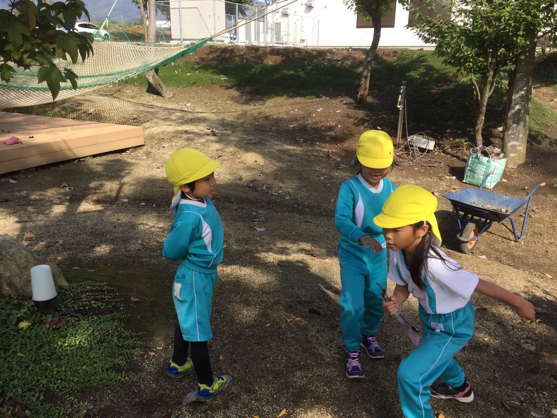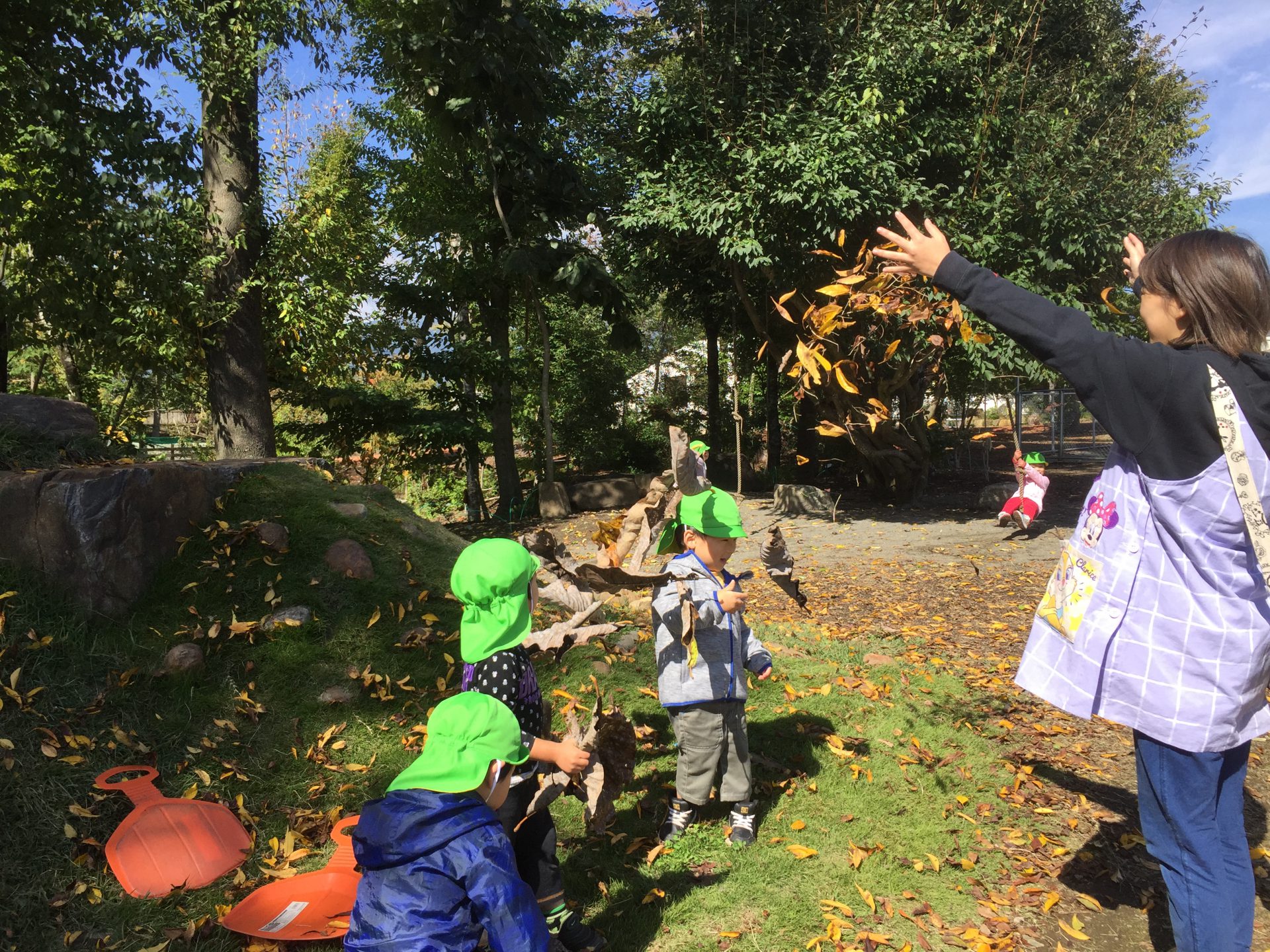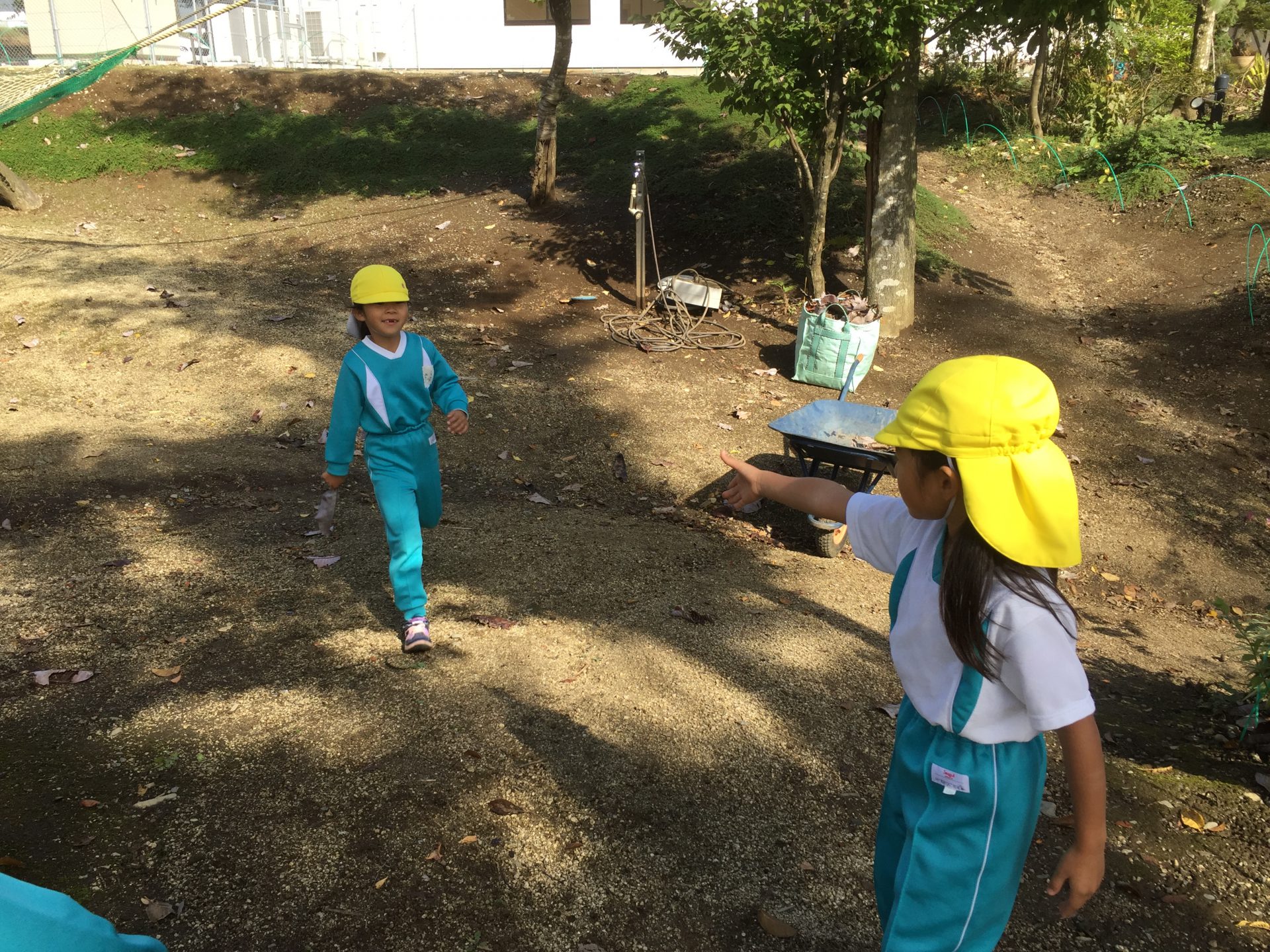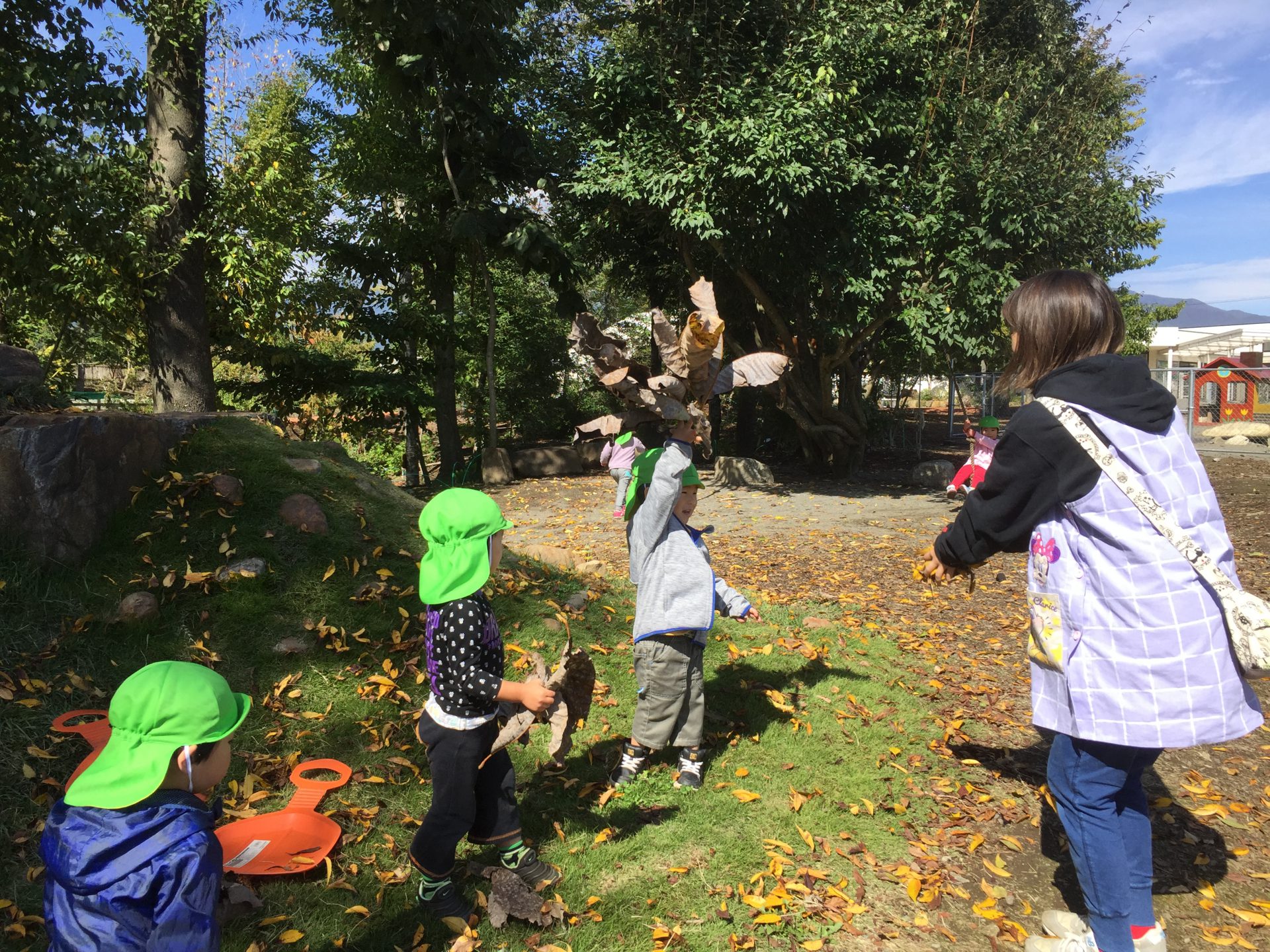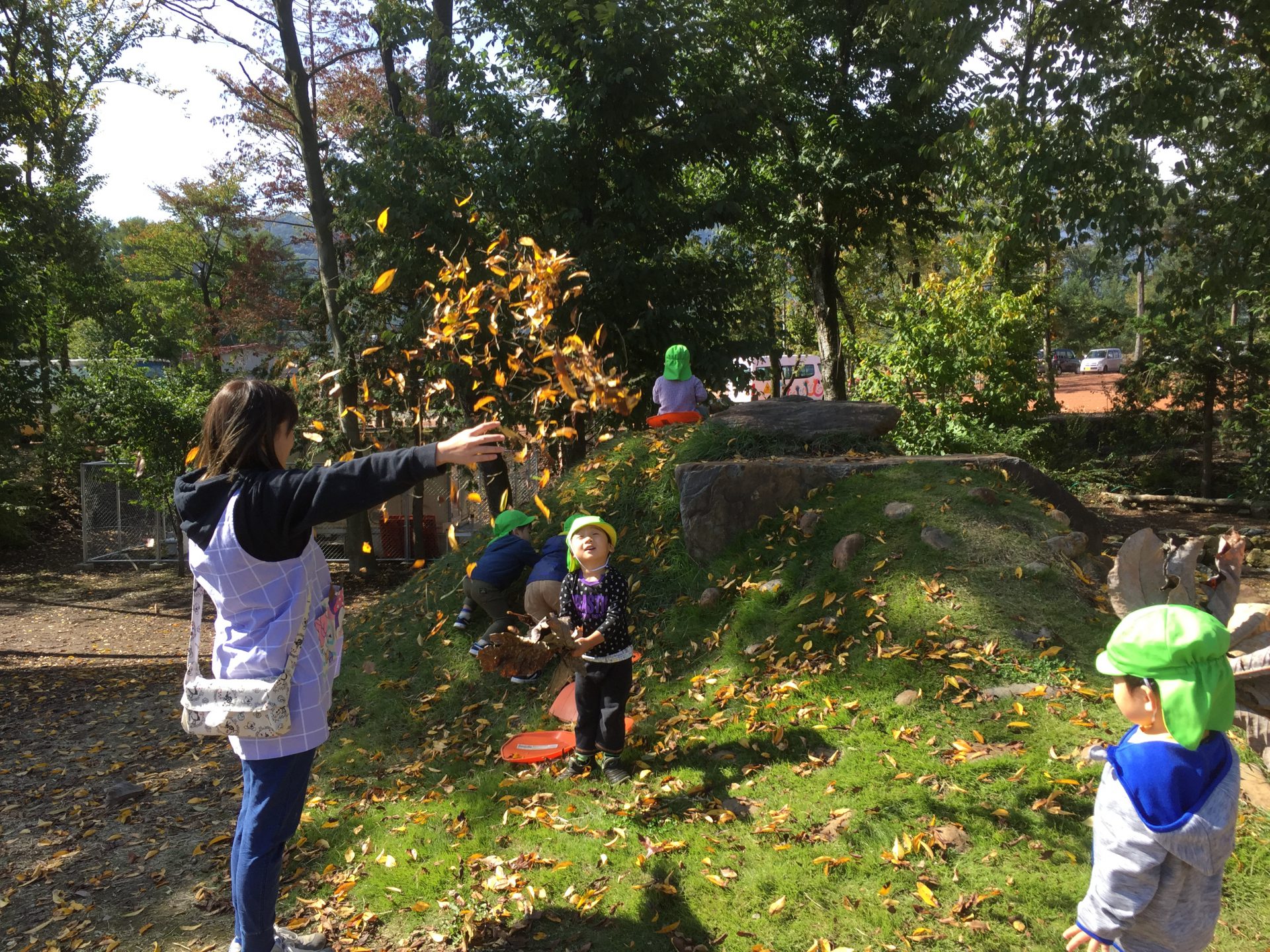 「もう一回、もう一回」と、何度も落ち葉を集め「それっ」と、楽しんでいました。