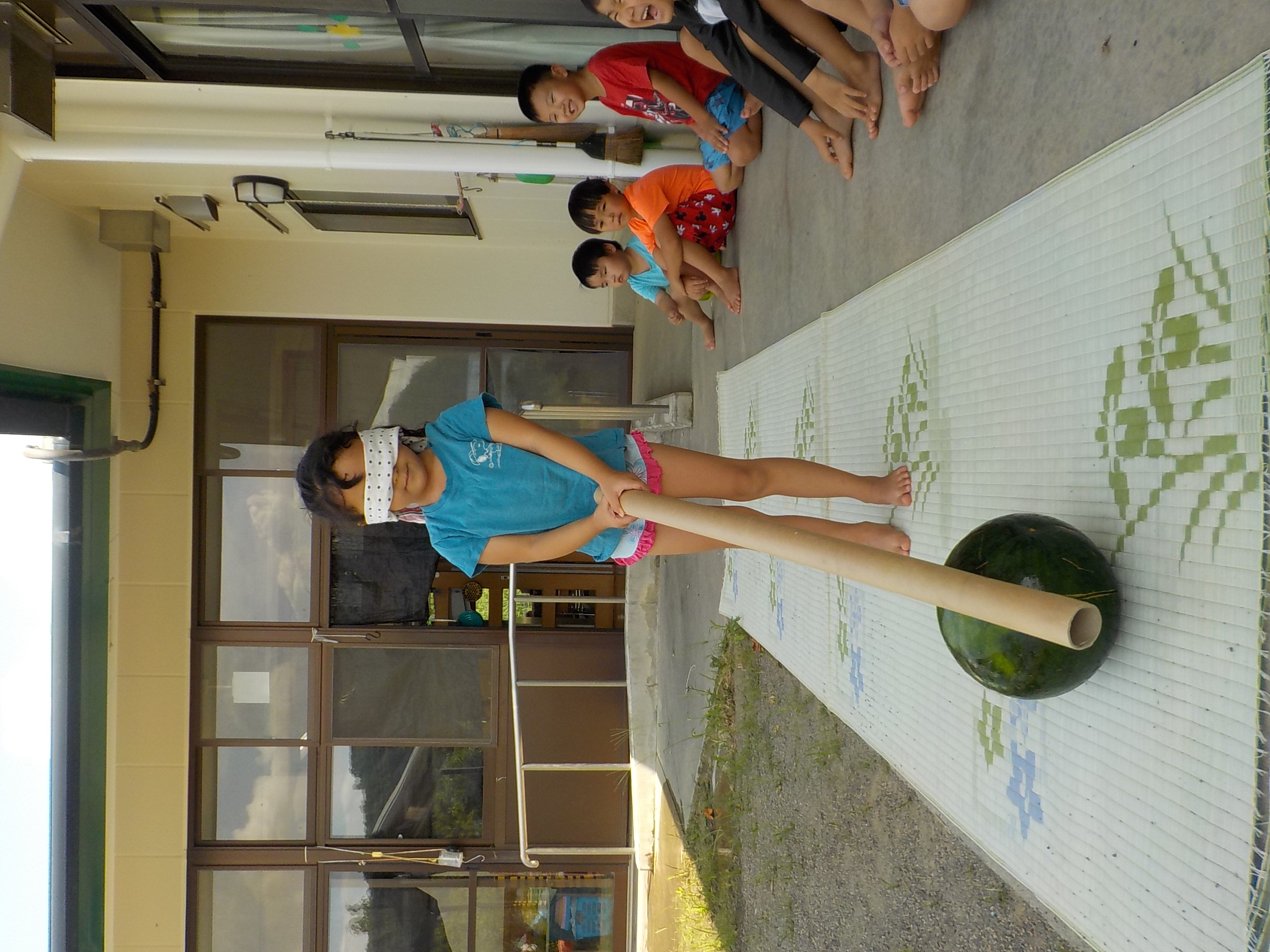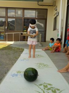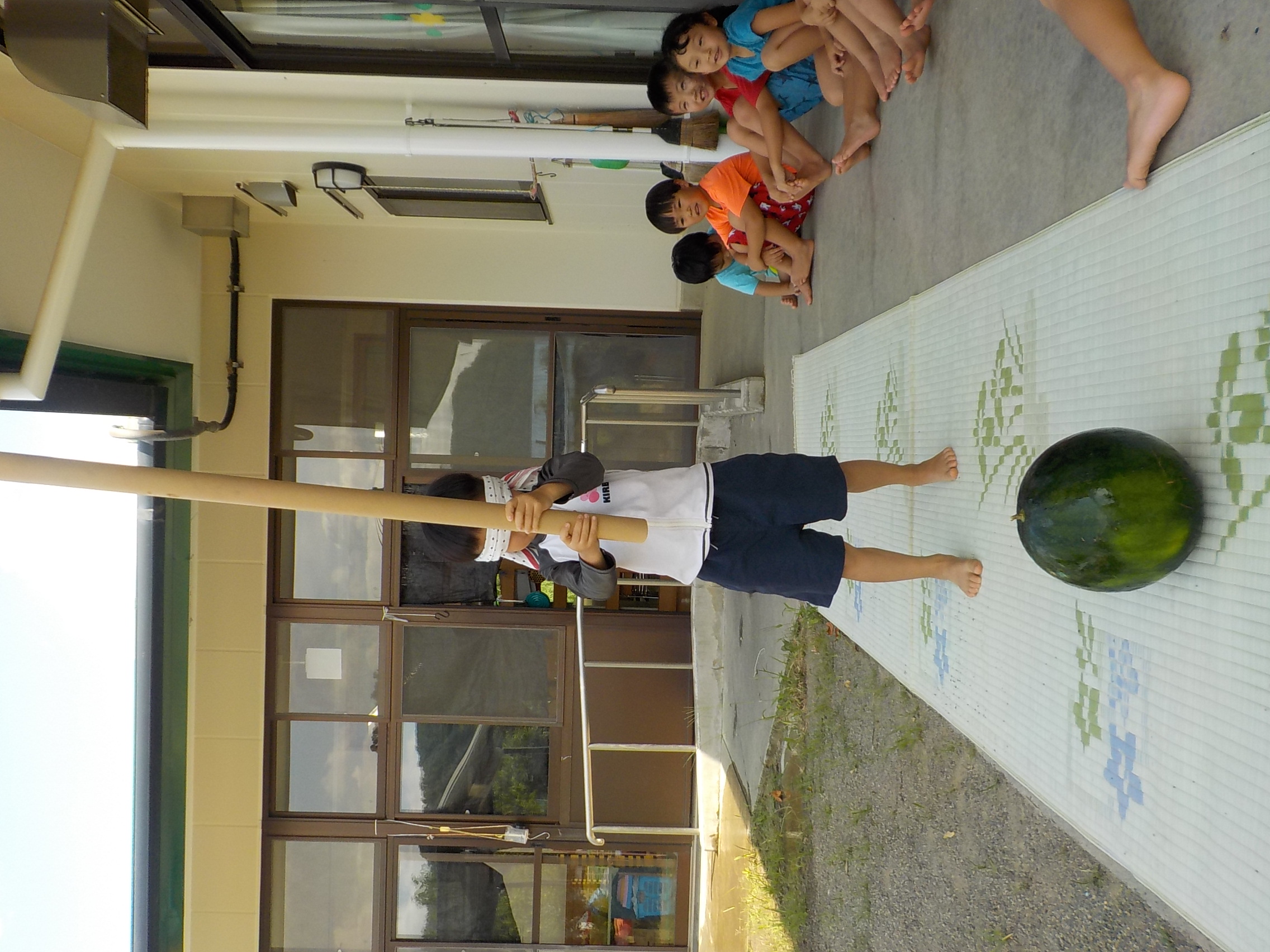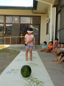 ・みんなで力を合わせて、スイカを割ろうと、声を掛け合いながら立ち向かう姿が印象的でした。