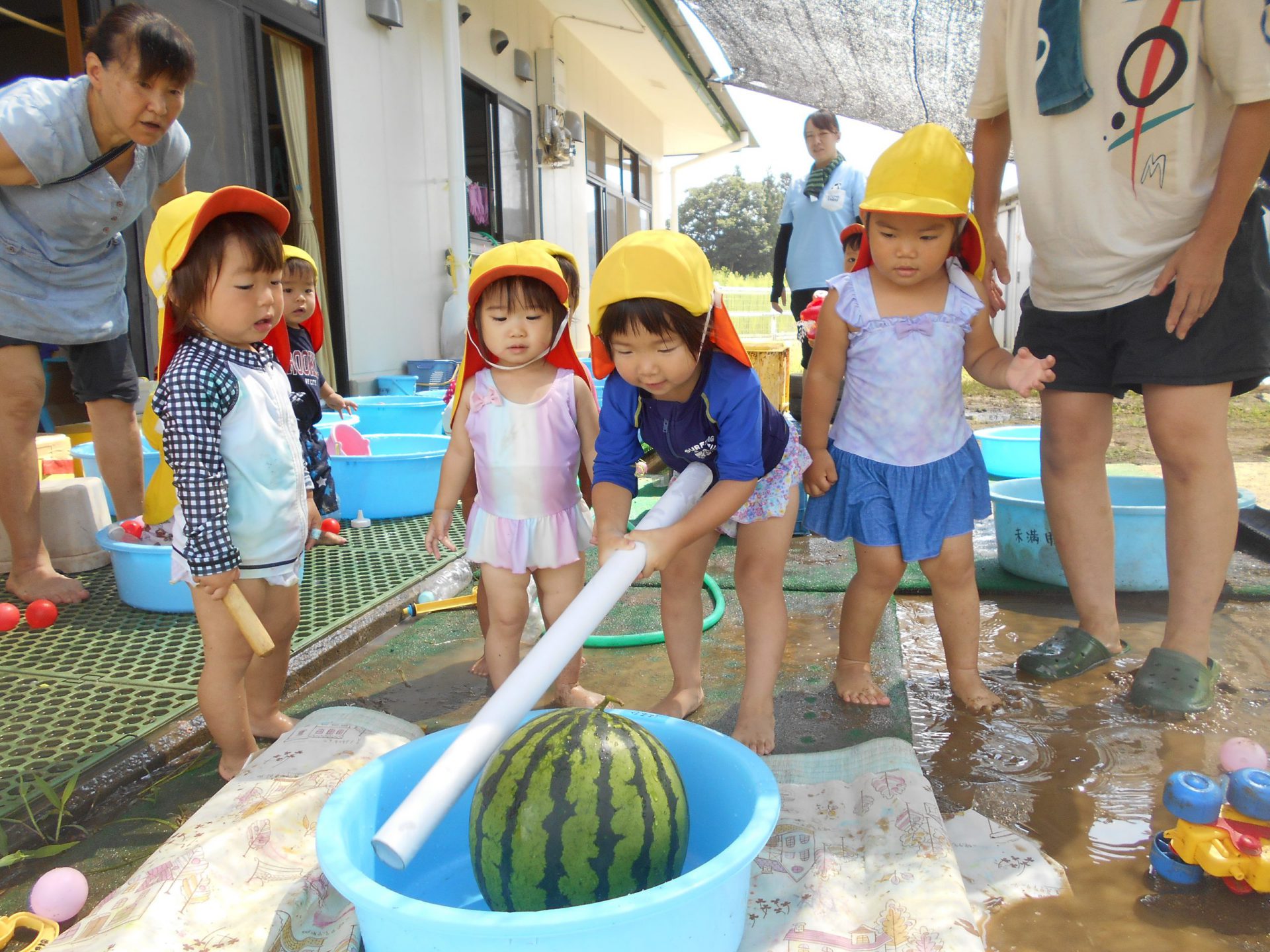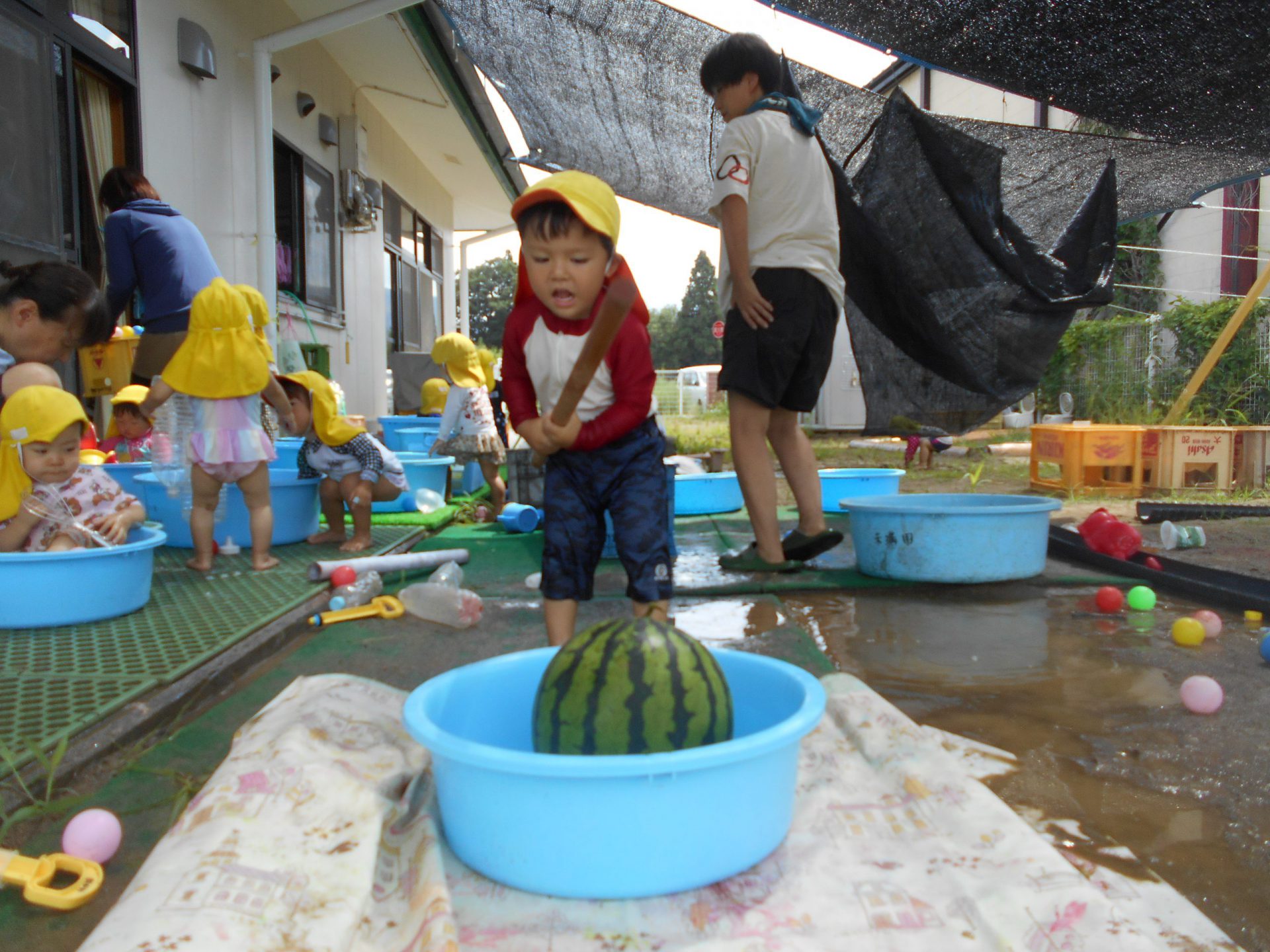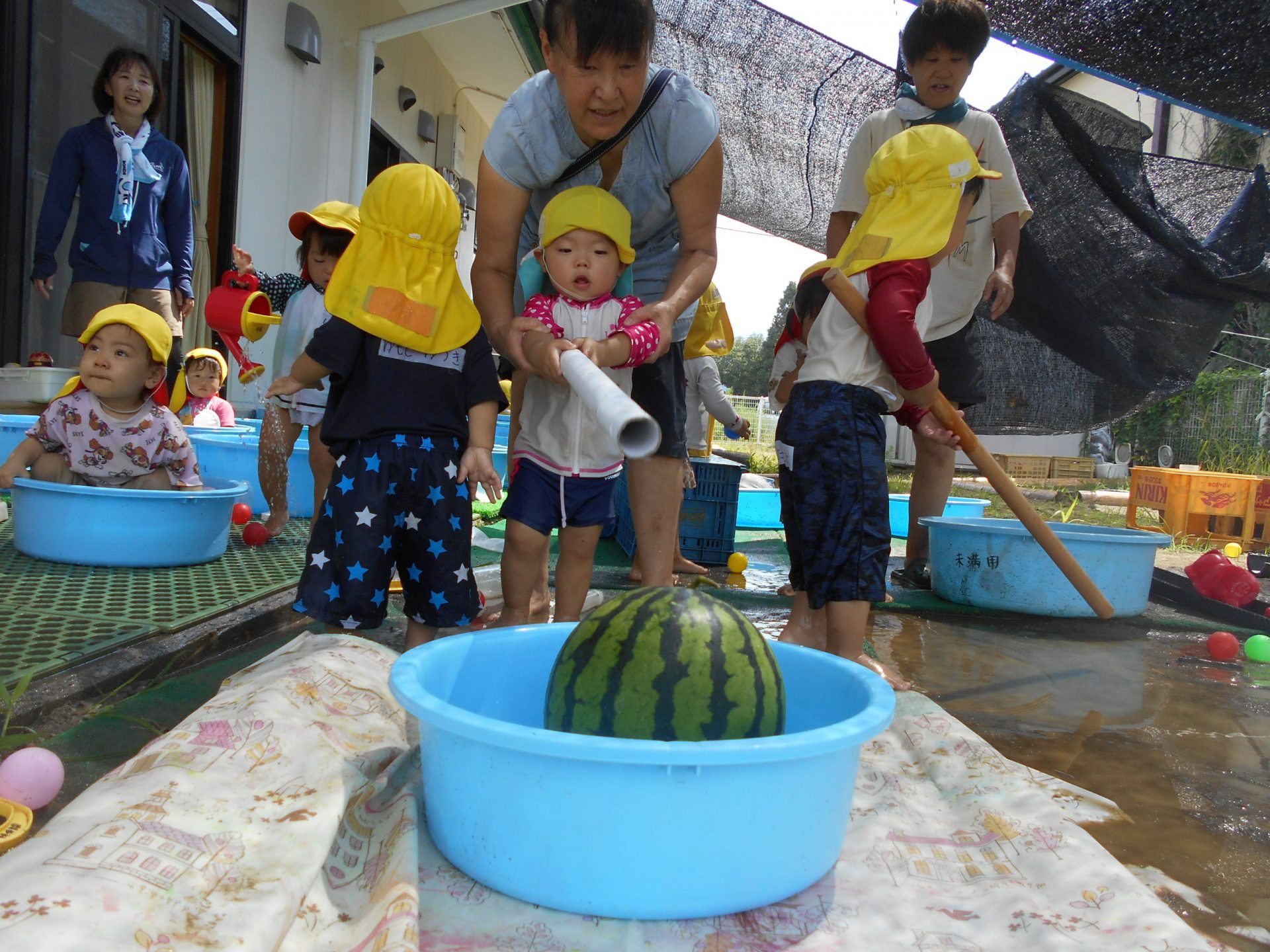 0.1.2歳クラスもスイカ割りに挑戦🍉