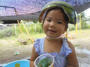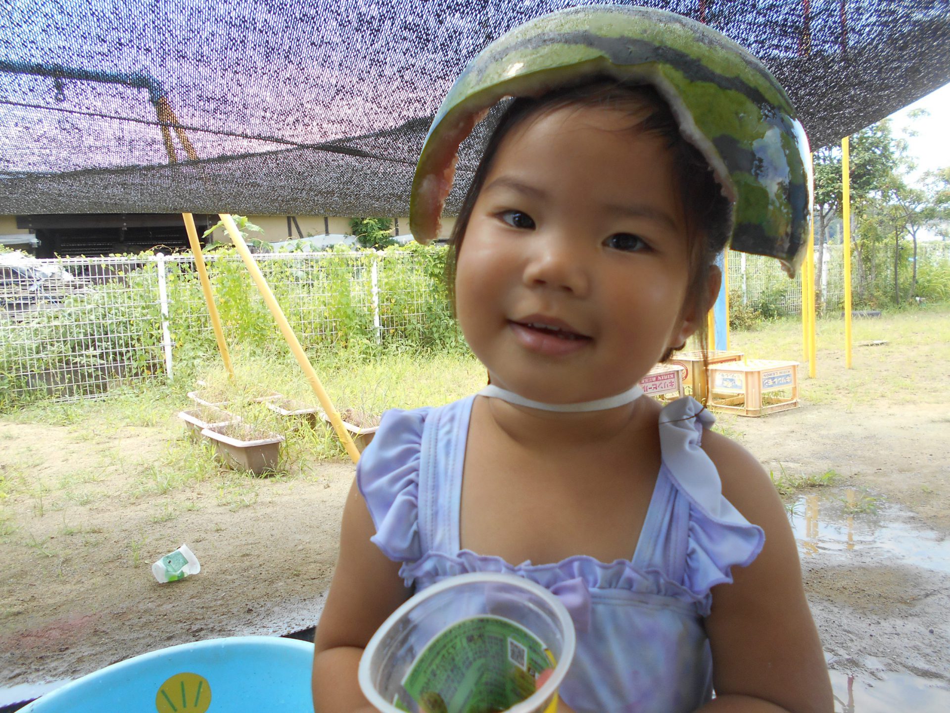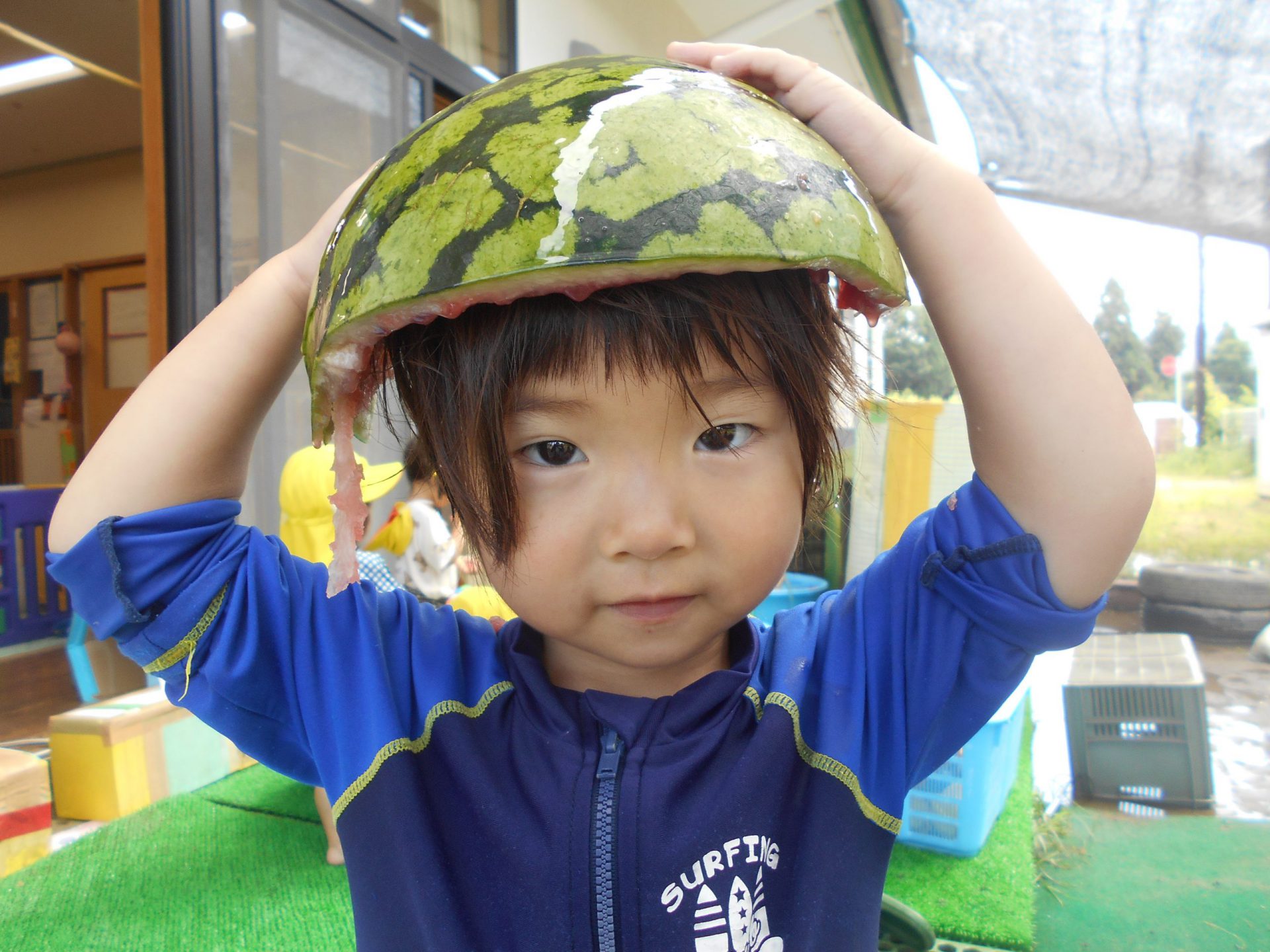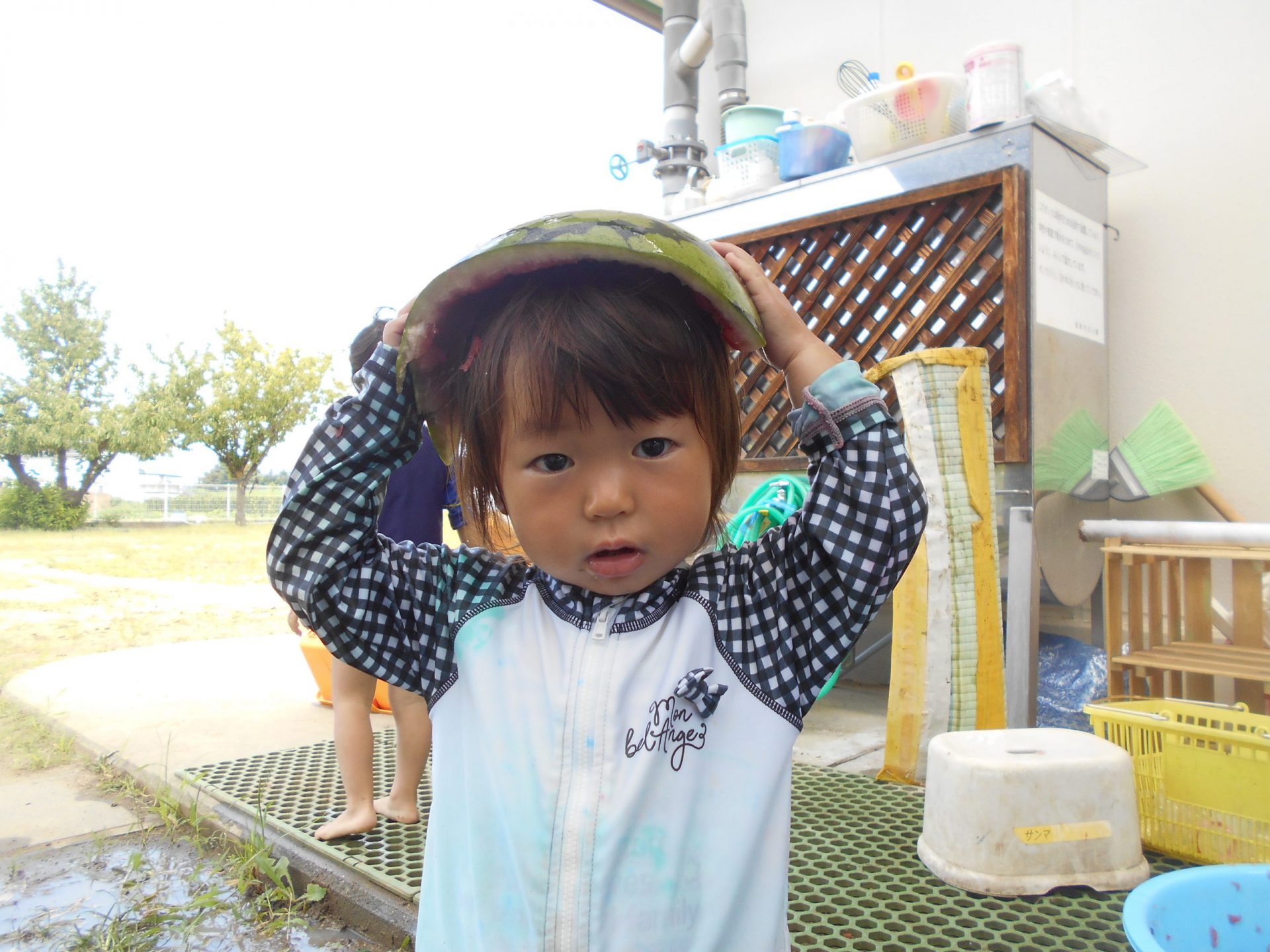 遊んだ後は、スイカの皮の帽子も被ってみました👒✨