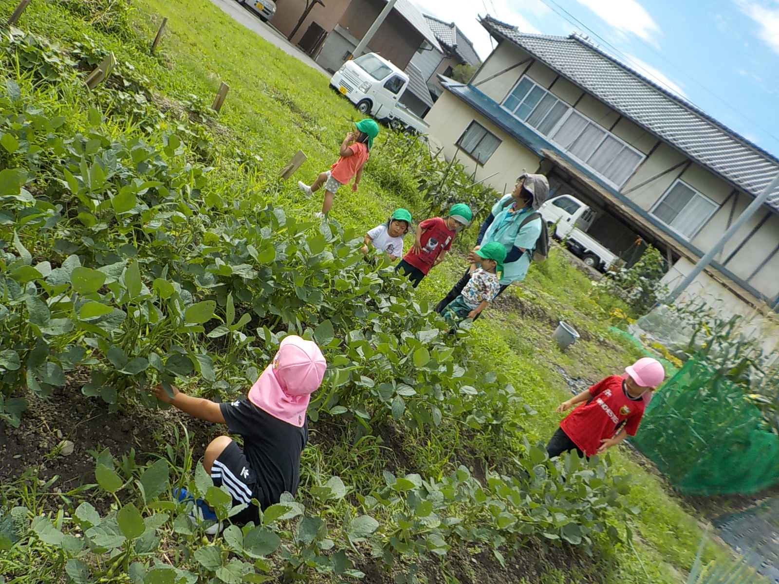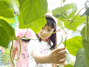 ・園だけでは体験できることに限りがあり、いつも地域の方のお力をお借りすることで、子ども達の「やってみたい」「もっと」が実現させてもらえています。今回も地域の畑を知り、たくさんの野菜の生長を知ることが出来ただけではなく、グループホームの利用者さんとも交流が出来、温かい眼差しとお声を頂きました。大きな活動ではないですが、このような子どもの気付きややりたいを大事にした小さな出来事も、大事に積み重ねていきたいと思います。次は、どんな事をしようかな?子どもと考えたいと思います。