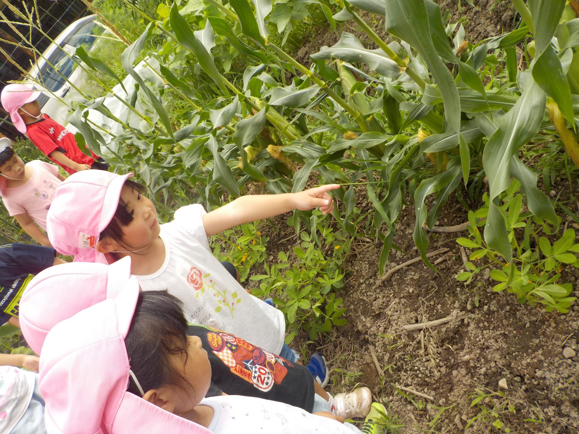 しかし、子ども達の注目は、大好きなトウモロコシや巨大なスイカでした(笑)