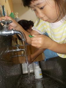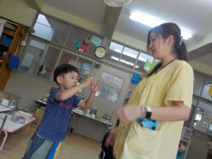 年少さんも遊びに来て、匂っていました。「鼻に入れちゃダメだからね」と、年中お姉さんは優しく教えてくれました。匂いは重要なようです。