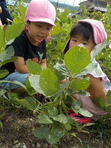・子ども達は、実際に豆や畑の様子を見たり触れたりすることで感じた言葉があちこちから溢れてきました。活動内容の中に掲載させて頂きました。