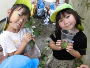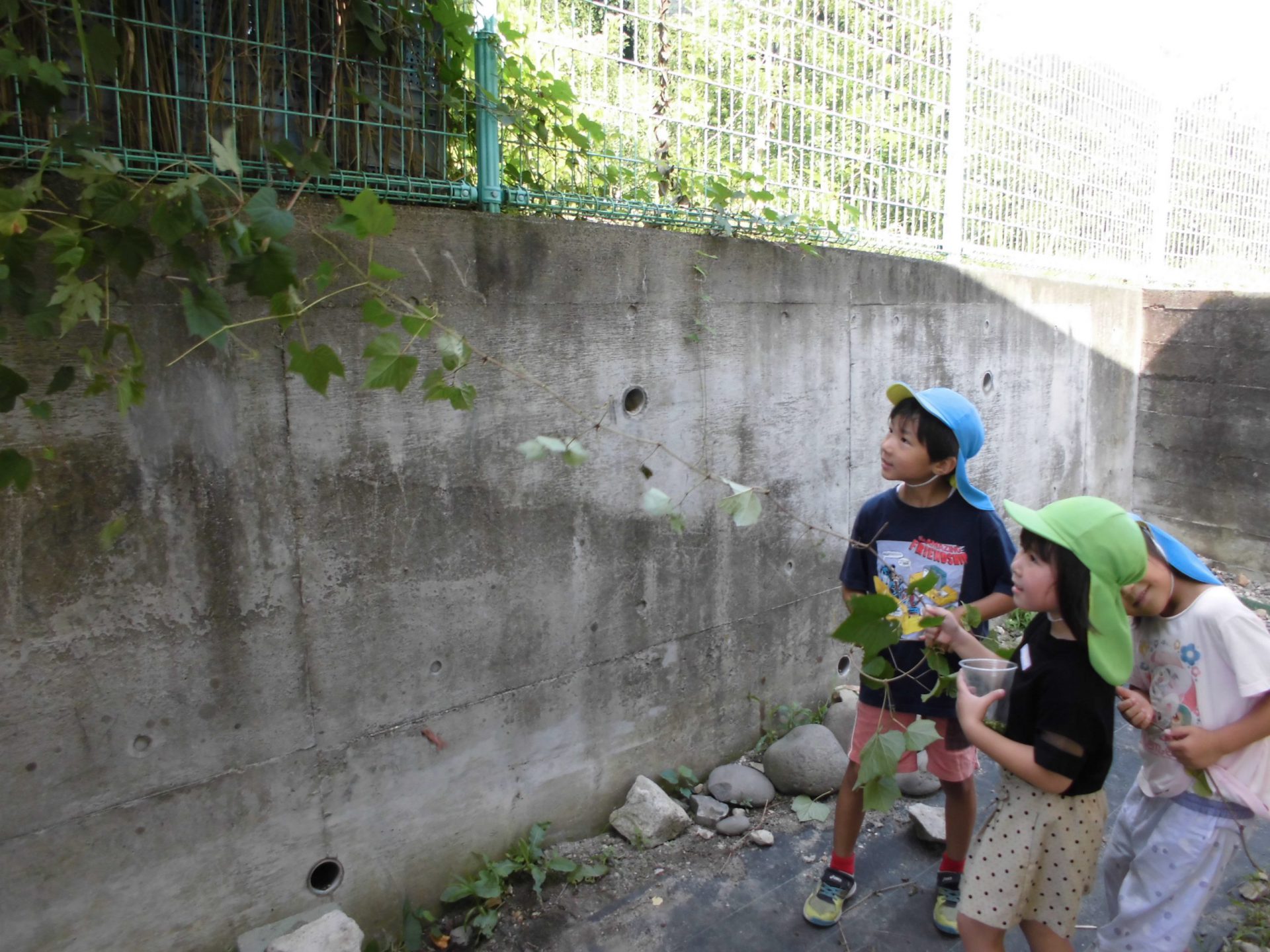 子ども達が「豆」と呼んでいるのは秋にきれいな実になる「ノブドウ」の実です。