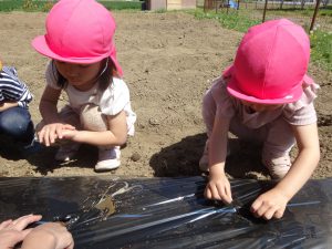 4月、保育園に畑があることを伝えると「野菜を育てたい!」と子どもたち。