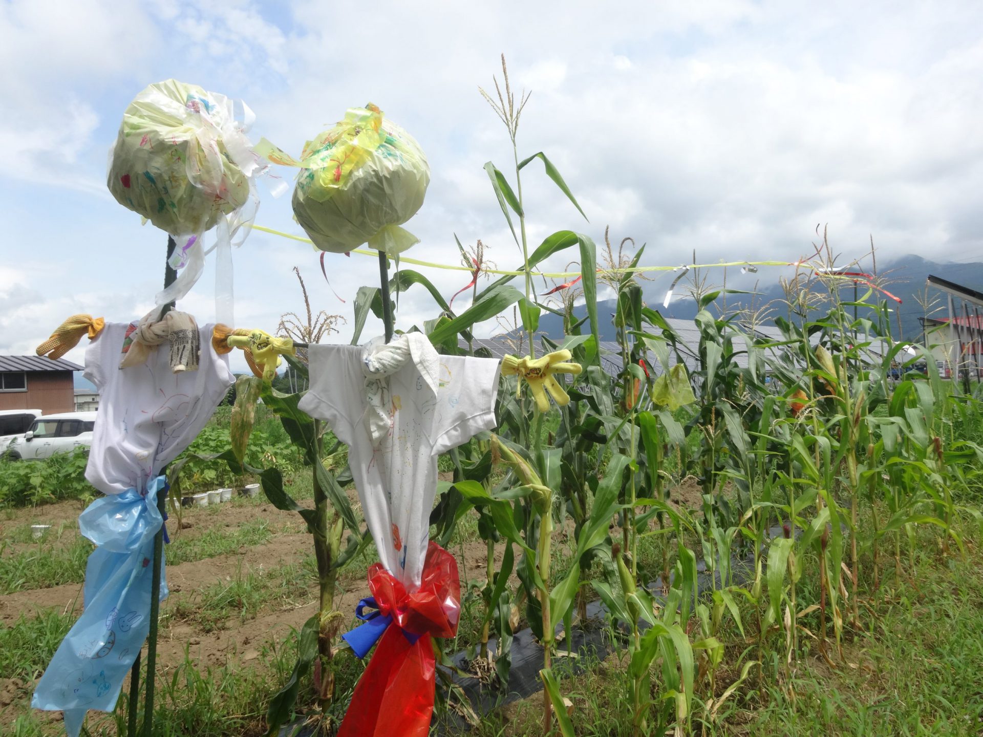 ということで、お家の方にも手伝っていただき「かかし」を作りました。