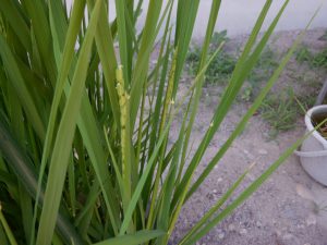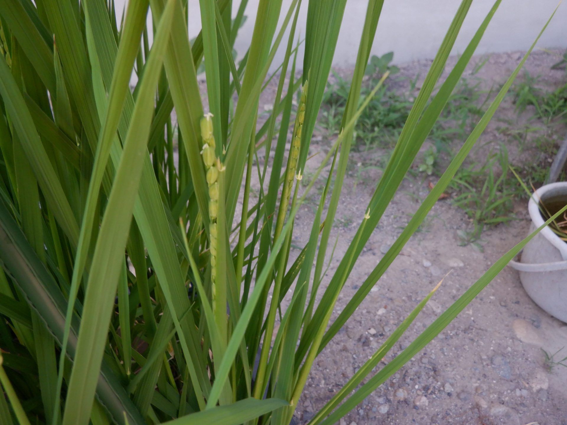 小さくて見えづらいですが小さな白いものが、稲の花です。