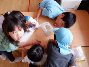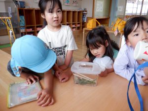 あとから登園して来た子ども達も、「なになに?」と気になる様子・・・。