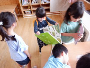 クラスにある図鑑を持ってきては、ページをめくり探します。