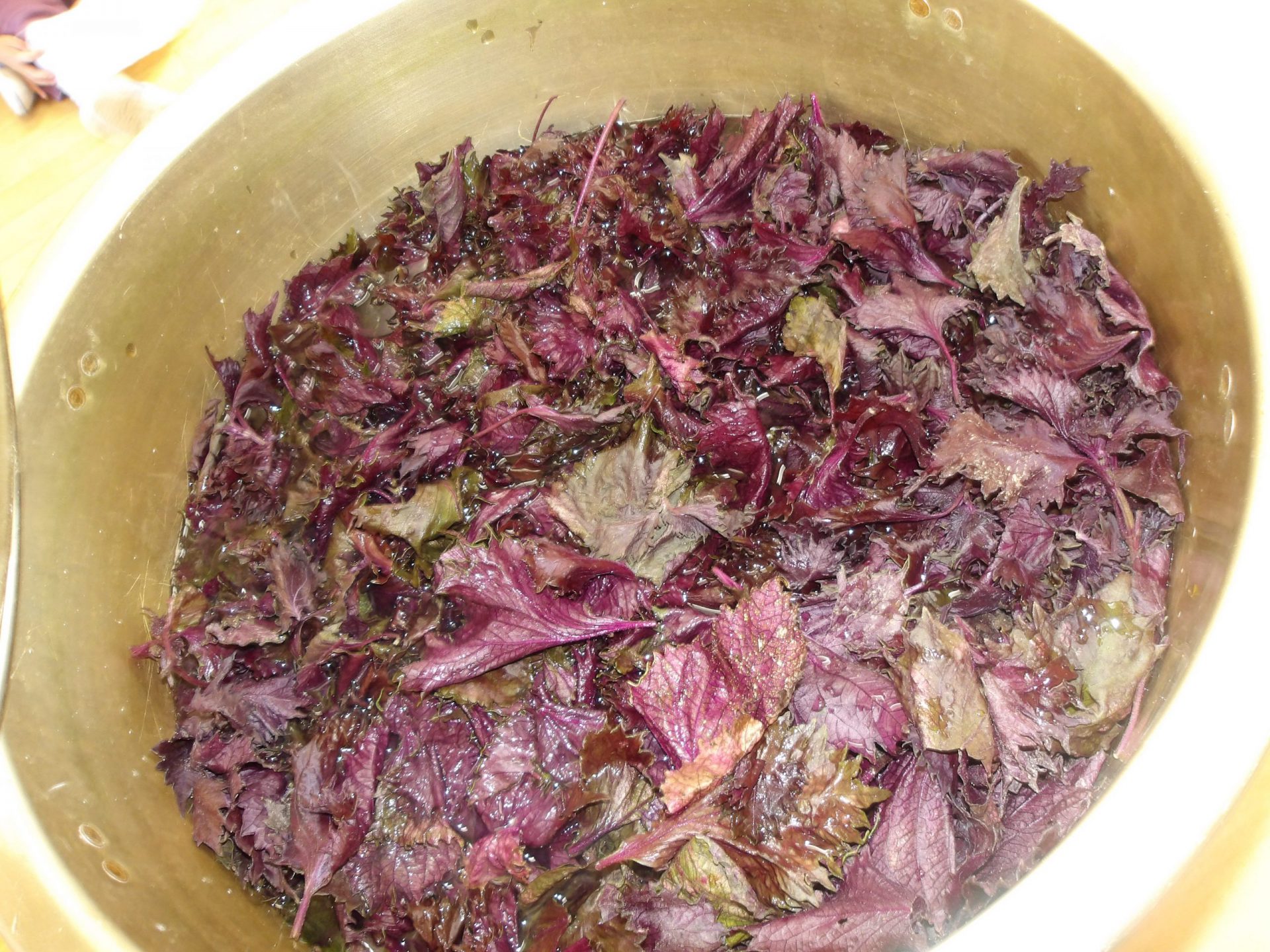 早速、手紙に書いてあった方法で、赤しそ染めに挑戦です。