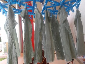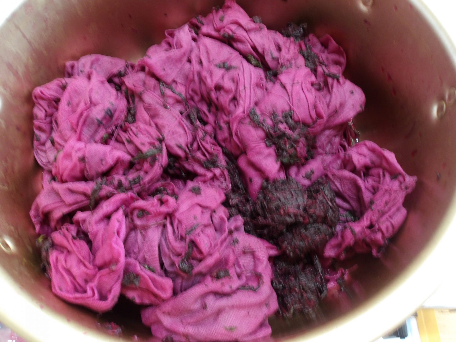工程ごとに色の変化を楽しみ、煮出したときの香りも感じながら、畑で育てた植物で布染めができることを経験できました。