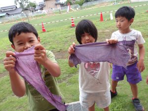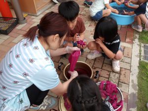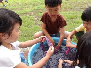 一人ひとり違う色になったり、だんだん変化していく色を友達と共有したりと、楽しみながら洗っていました。