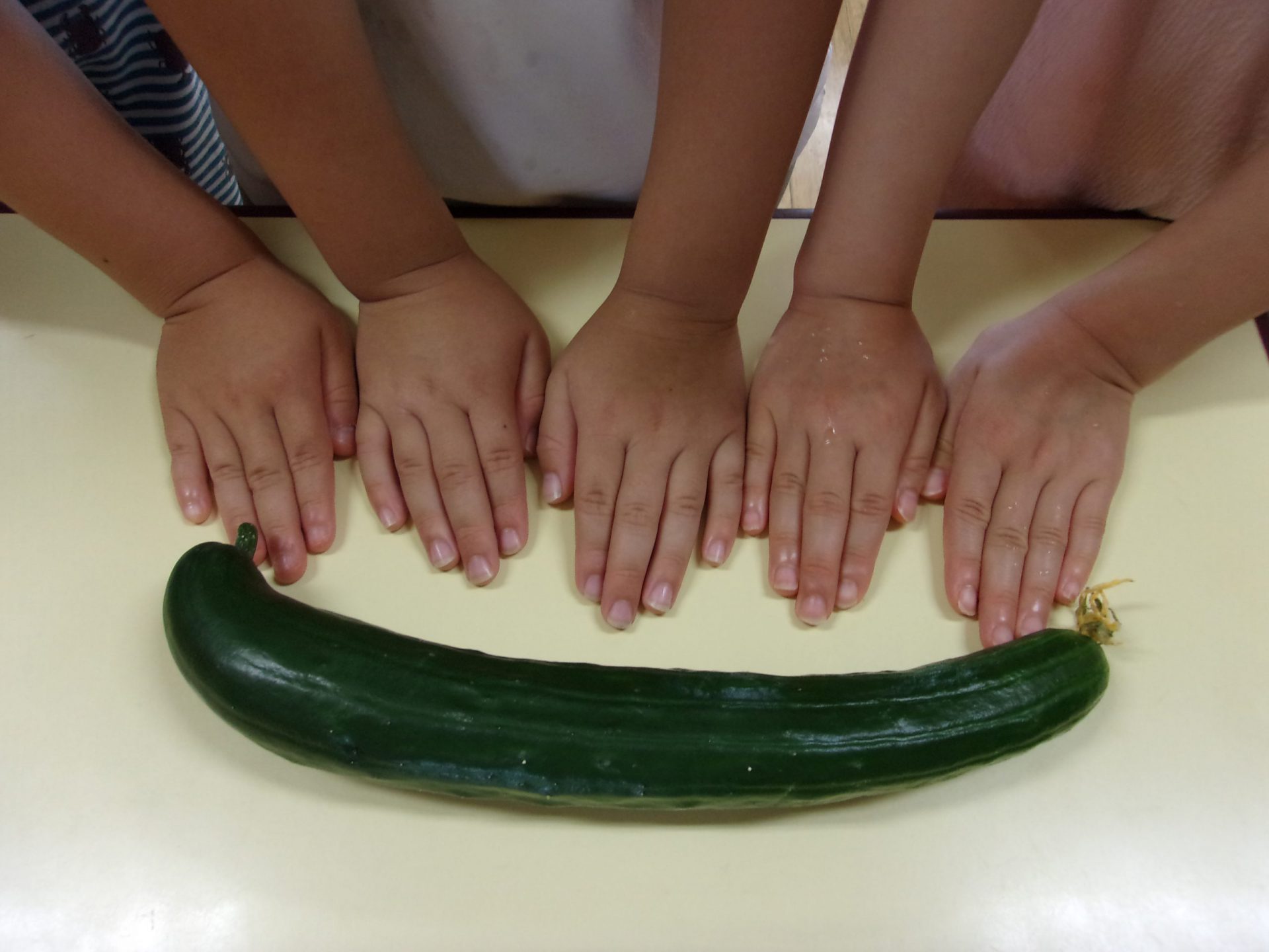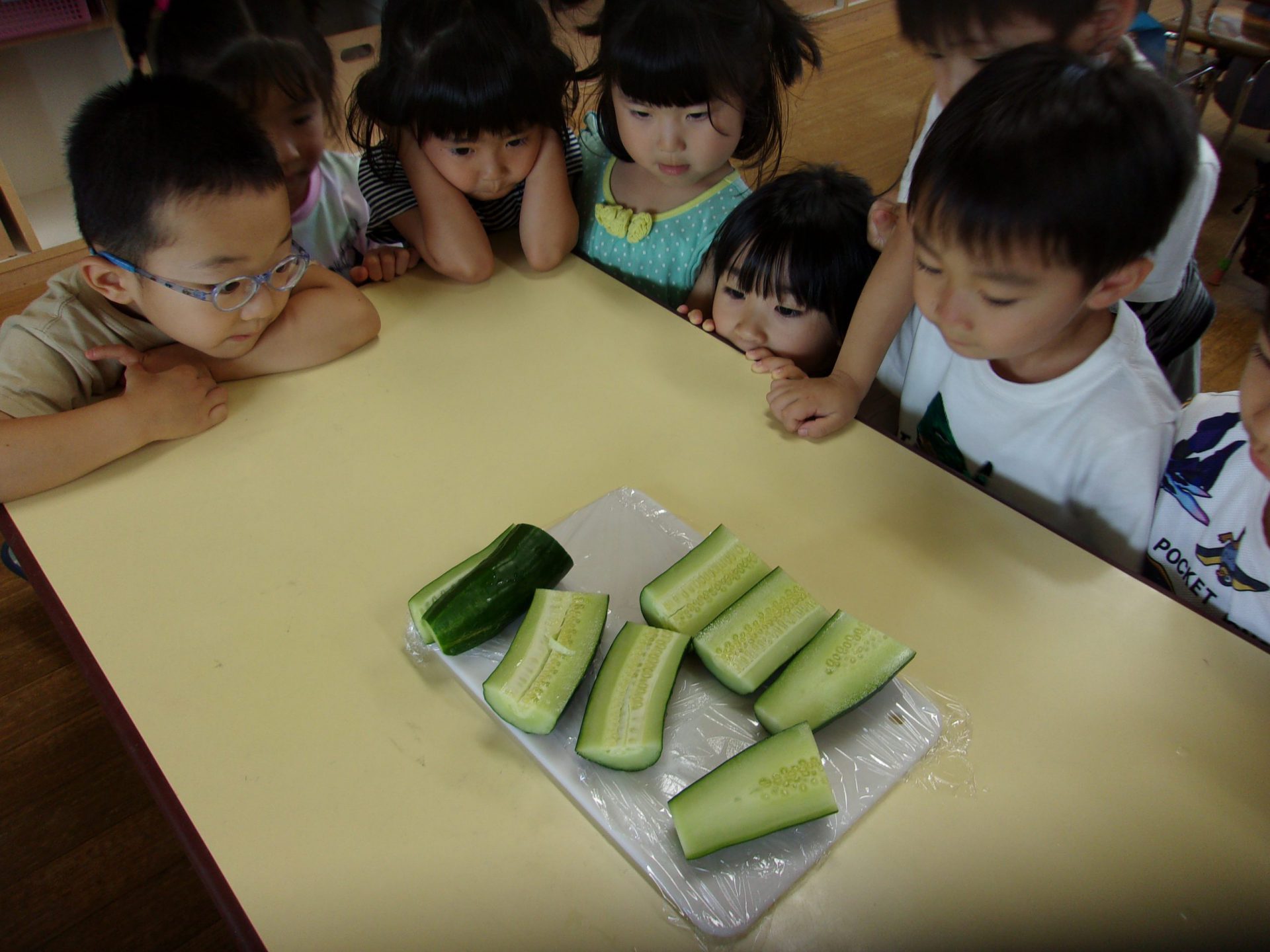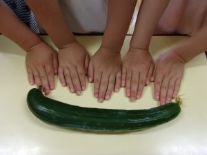 「わー!きゅうりの中が見えた」