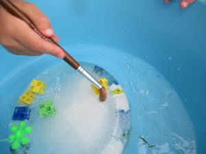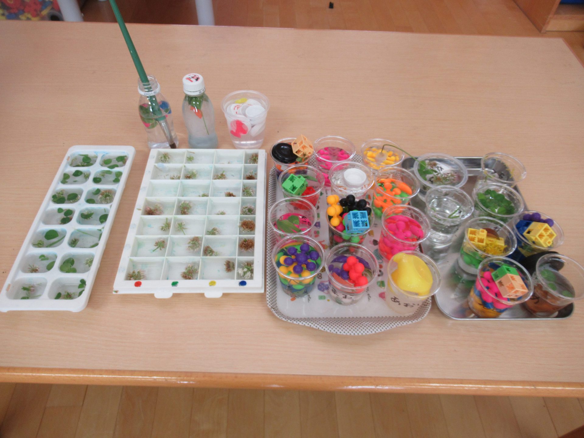 いつも遊んでいる玩具や草花を氷にしたらどうなるか…