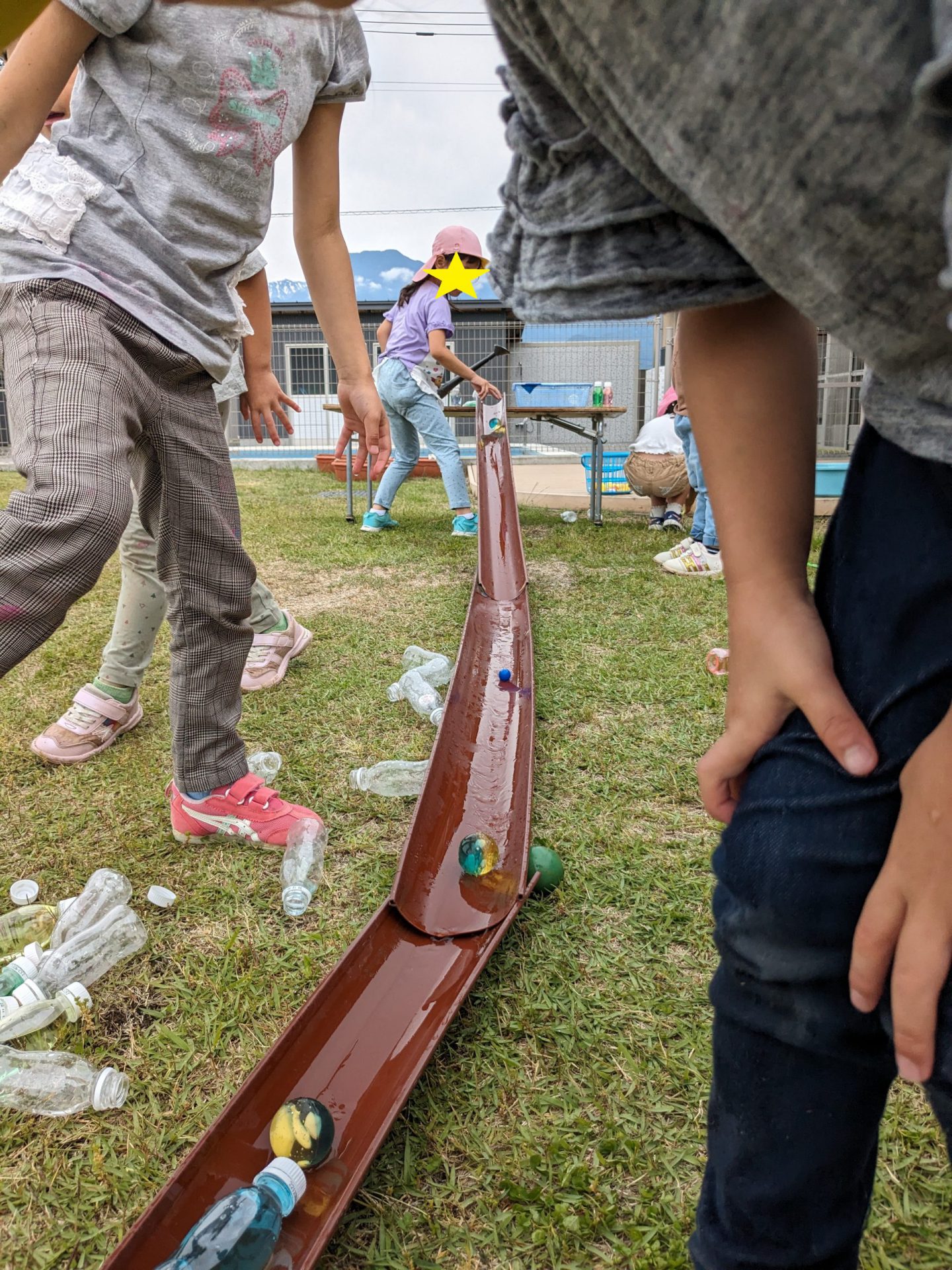 長い川の完成!ながしそうめんならぬ、ながしおもちゃで遊びを楽しみました。
