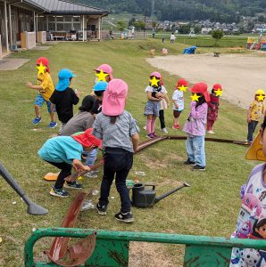 水が勢いよく飛び出る感覚に夢中の子どもたち。