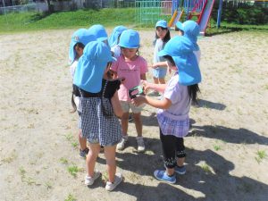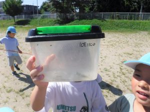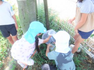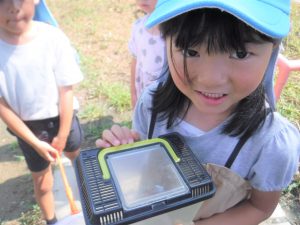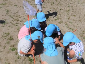 満足そうにつかまえた虫を見せ合うことで、とんぼ以外にも虫がいることが分かり、また見つけに走っていく子ども達でした。