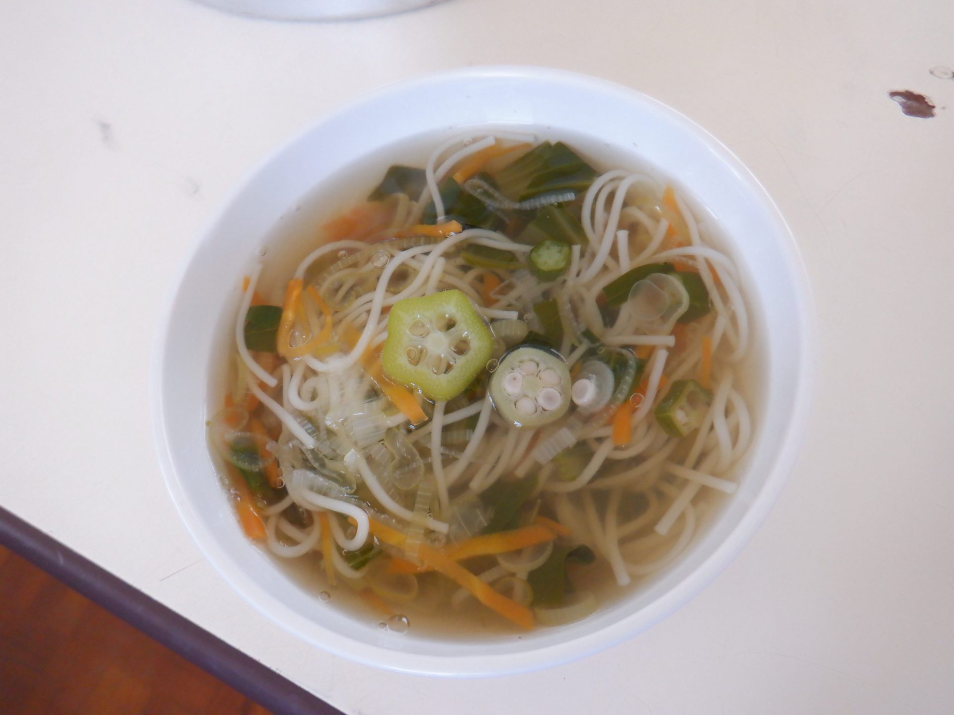「オクラみつけた。」「これ赤いオクラだ。」と汁の中のオクラをみつけてはたくさん食べました。