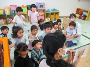小さいのを抜くよ。と保育士が言うと、「これにしようかな?これかな?」と迷いながら選んでいました。