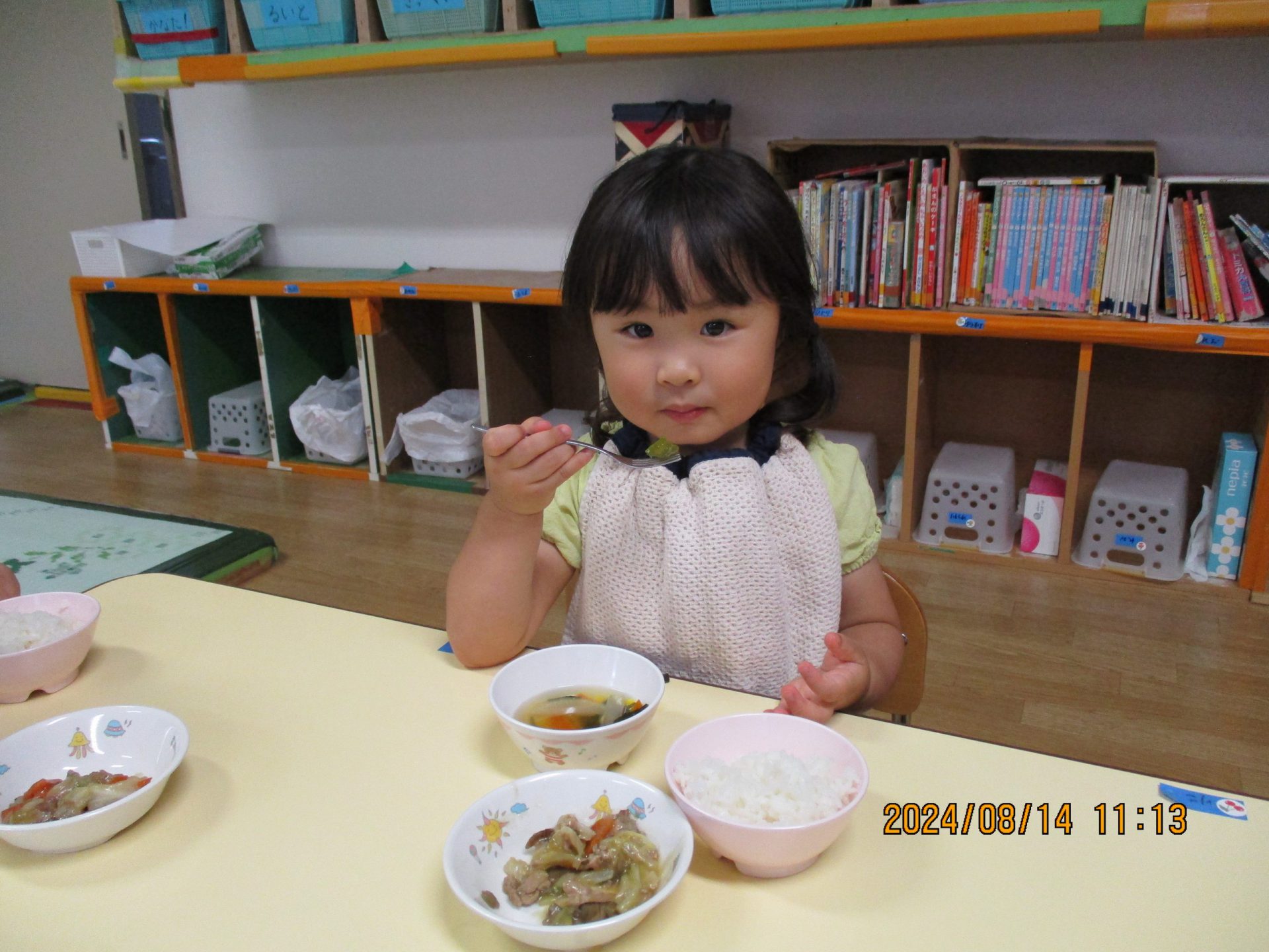 「りんご組のピーマン入ってた~!」と、夢中で探して見つけ、食べてみていました。