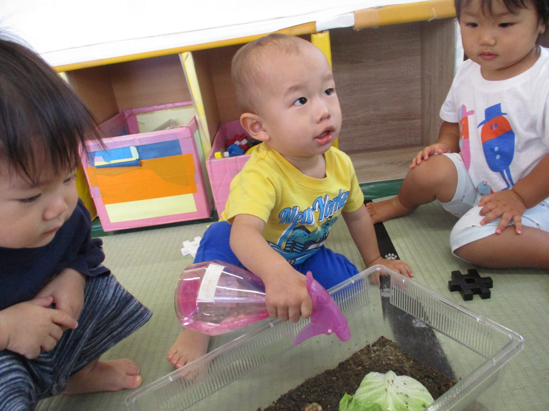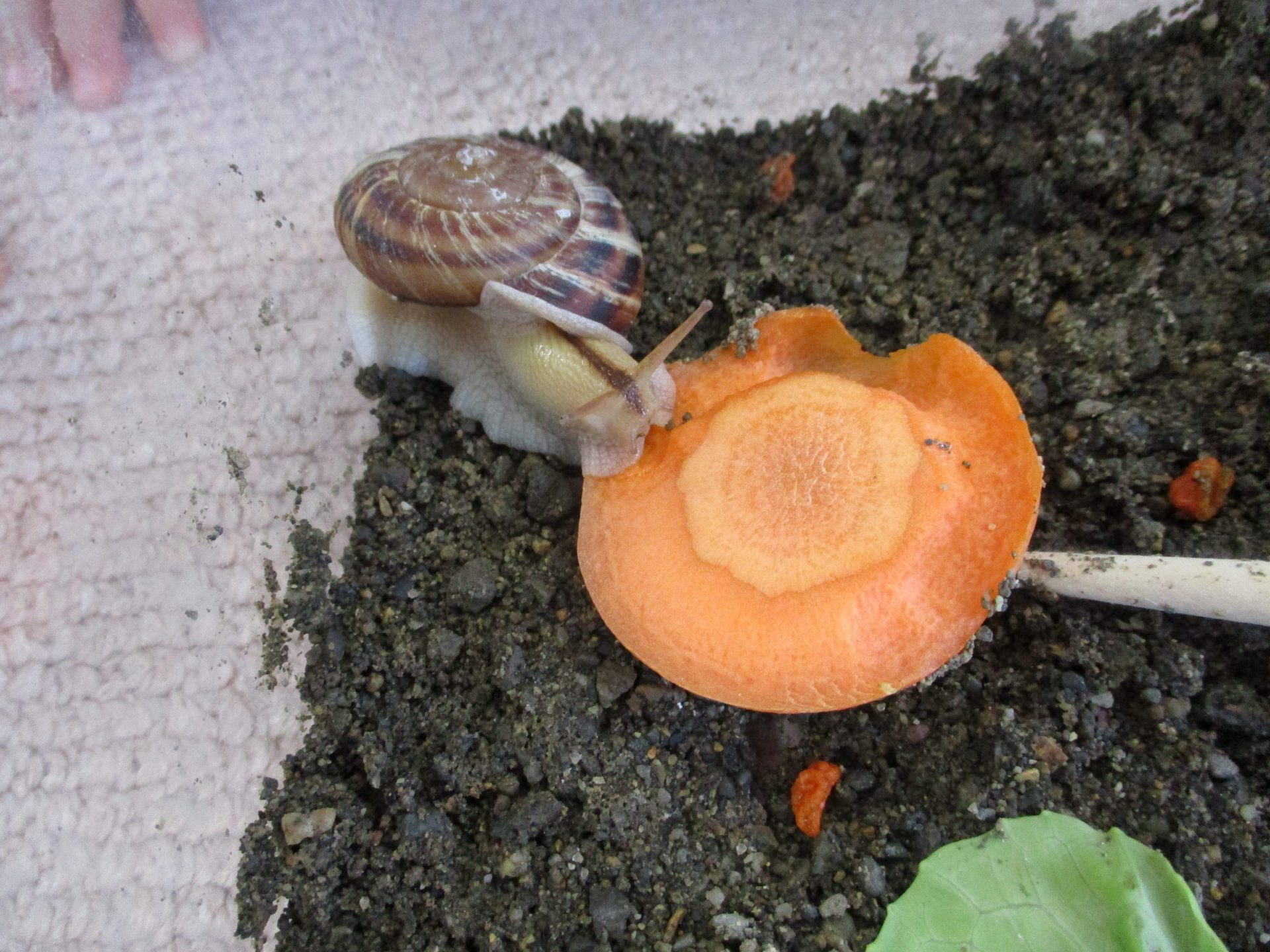 まだ、かたつむりを見たことがないであろう1歳児に初めて見せてみました。
