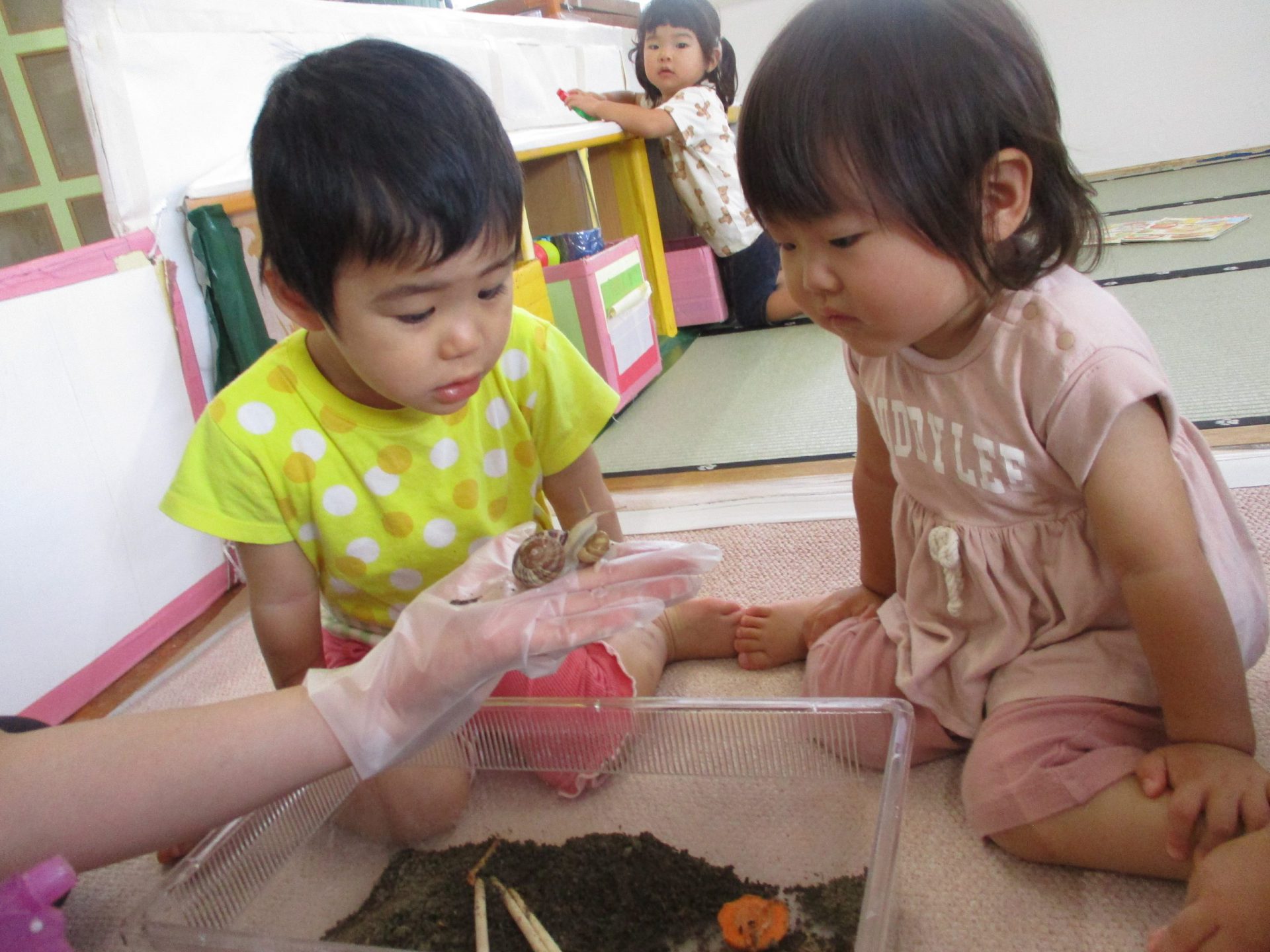 「♪でんでんむしむしかたつむり~おまえがか~たつむり~」と歌っている子もいました。