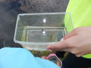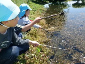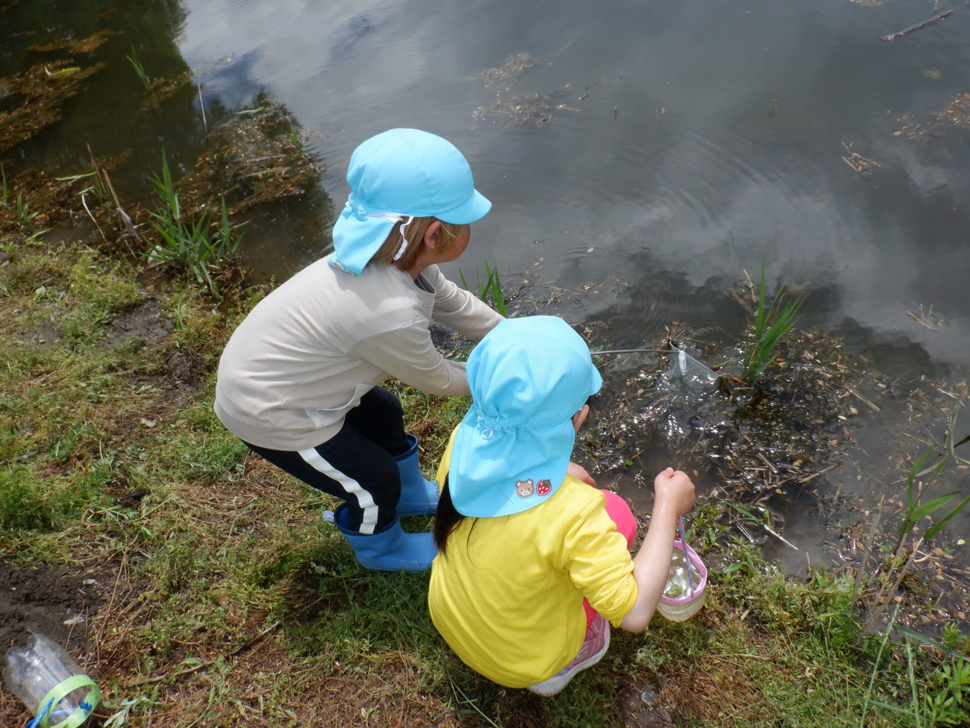 春、園の近くの池に散歩に出かけ、メダカをつかまえました。