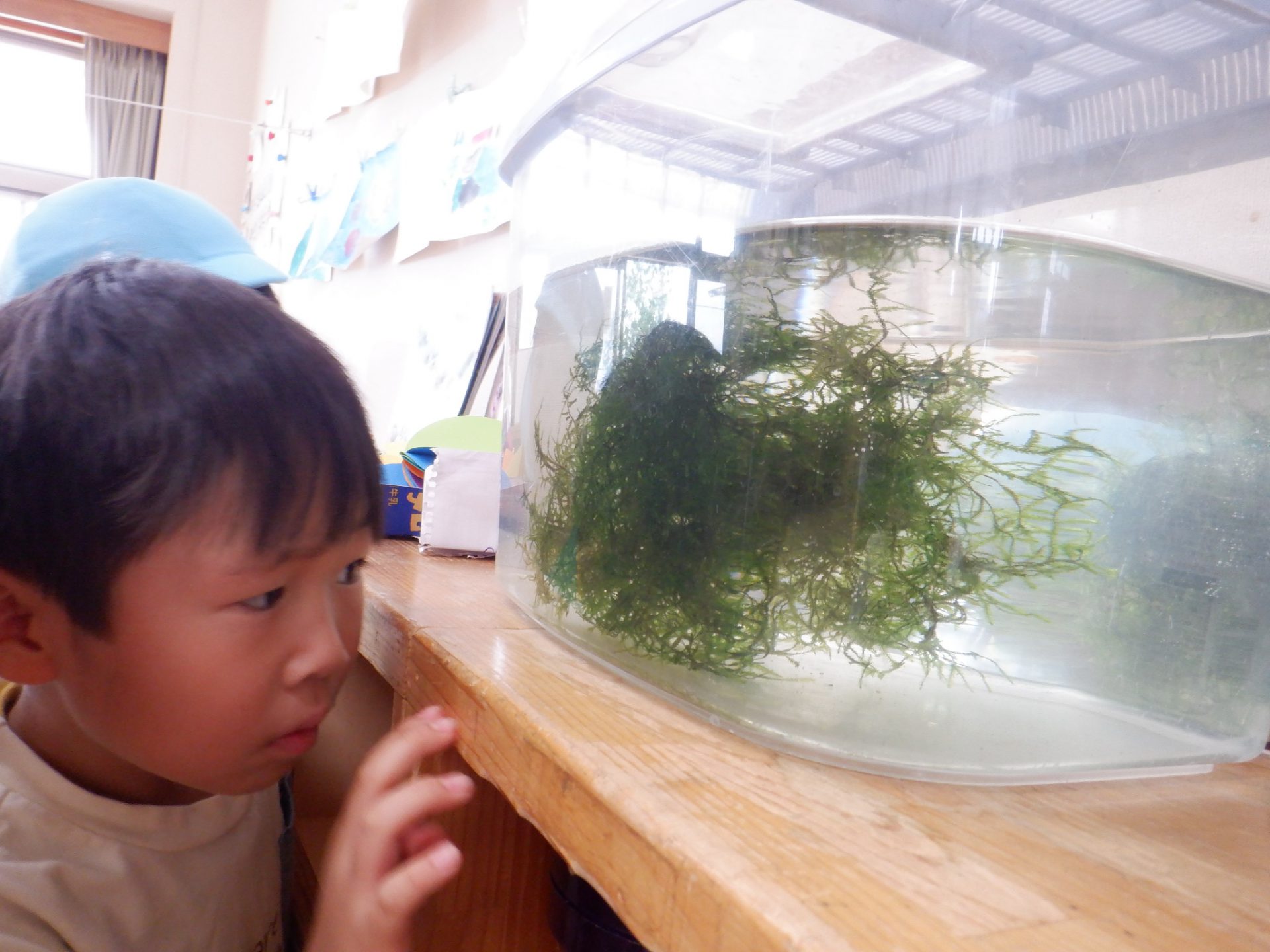 2回目に卵をつけた時は、子どもたちが大慌てで「先生!大きいメダカが食べちゃうかもしれないから、別にして!」と伝えてきました。