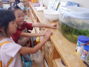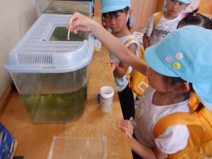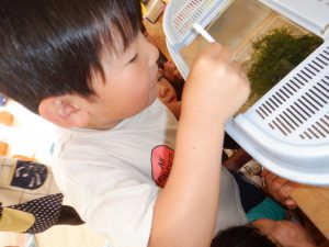 クラスのみんなで餌やりをしながら観察し、飼育を楽しんでいました。