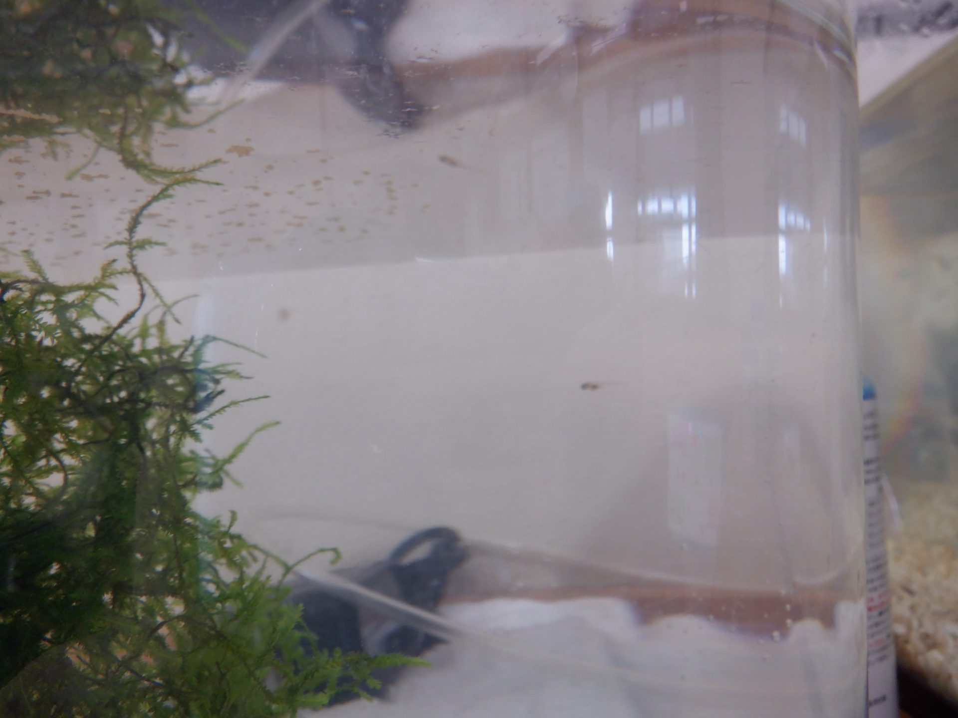 数日後・・・ メダカの赤ちゃんが生まれていました!! 「ちっちゃいの動いてるよ!!」「ほんとだ〜!!」