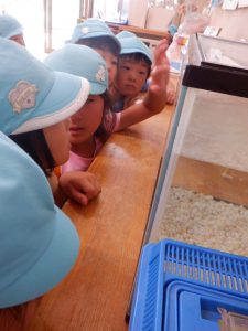 園に連れて帰り、各クラスに分けて飼い始めました。