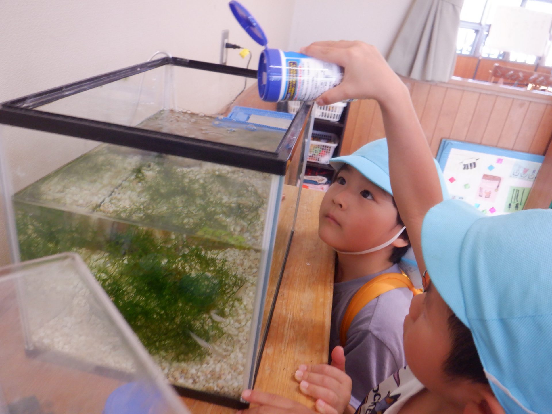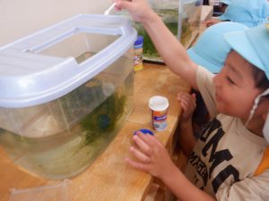 「メダカの赤ちゃんにエサをあげなきゃ!!」
