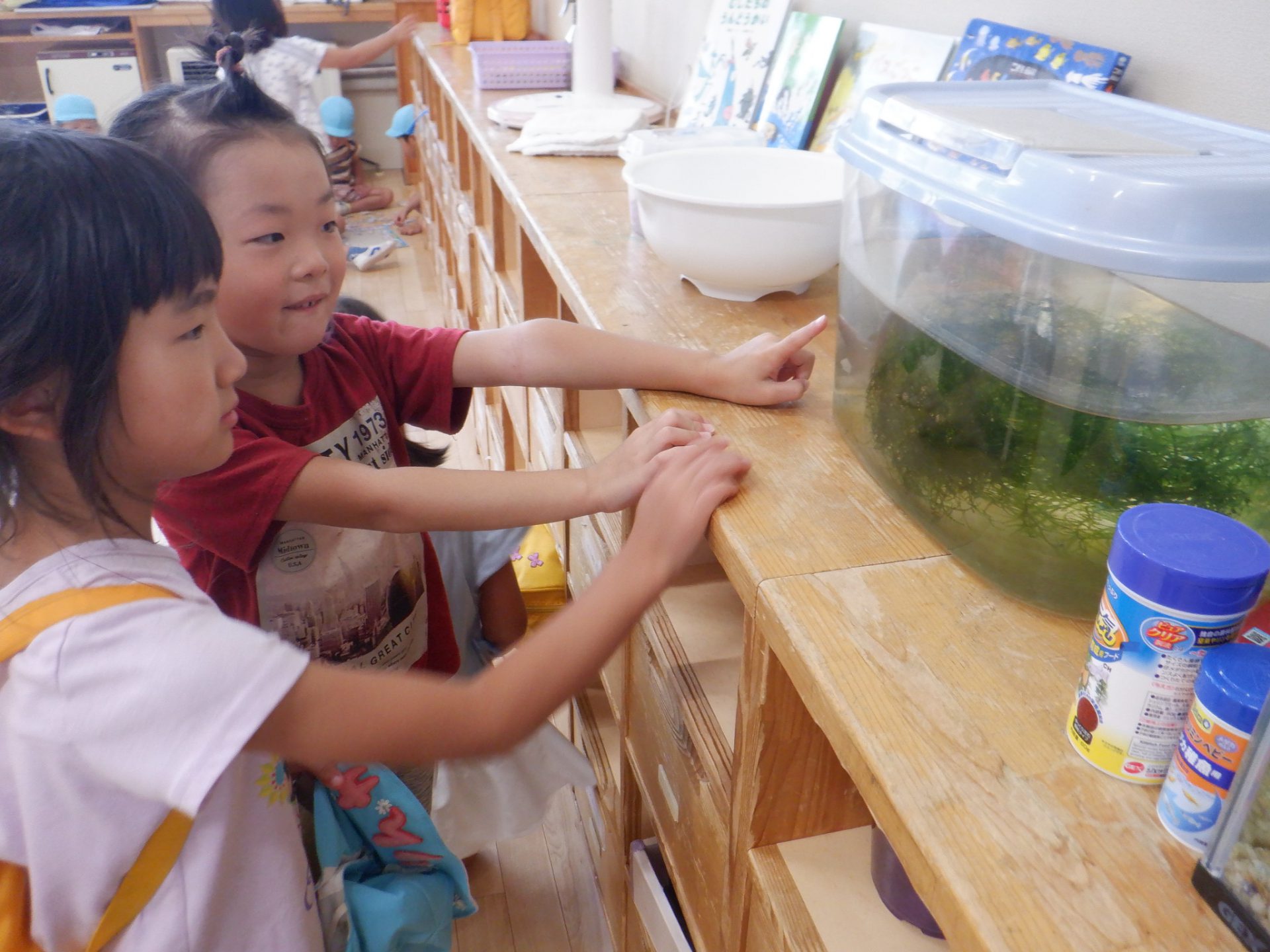 飼育を通して命の誕生を見ることができ、それを大切にしたいという子どもたちの思いが伝わってきました。 常に部屋の中にあることで、身近に変化を見ることができ、子どもたちの中に様々な考えや思いが出てきているように思います。 メダカの家族はもう少し増えそうなので、この先もまだまだ子どもたちと楽しんで観察していきたいと思います。