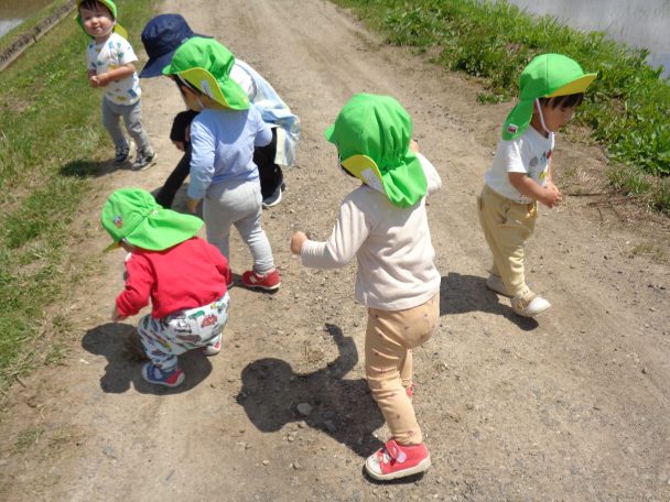 お兄さんお姉さんたちとここでお別れして、1歳児さんは、道端の探索開始です。