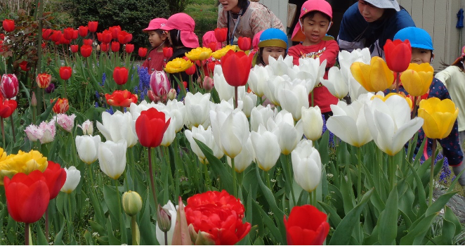 「わぁ~、キレイ!」「チューリップ、大きい!」