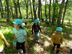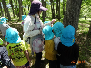 「林の中は、ちょっと暗くて涼しいね」「木がいっぱいで、お日様が隠れるからじゃない?」