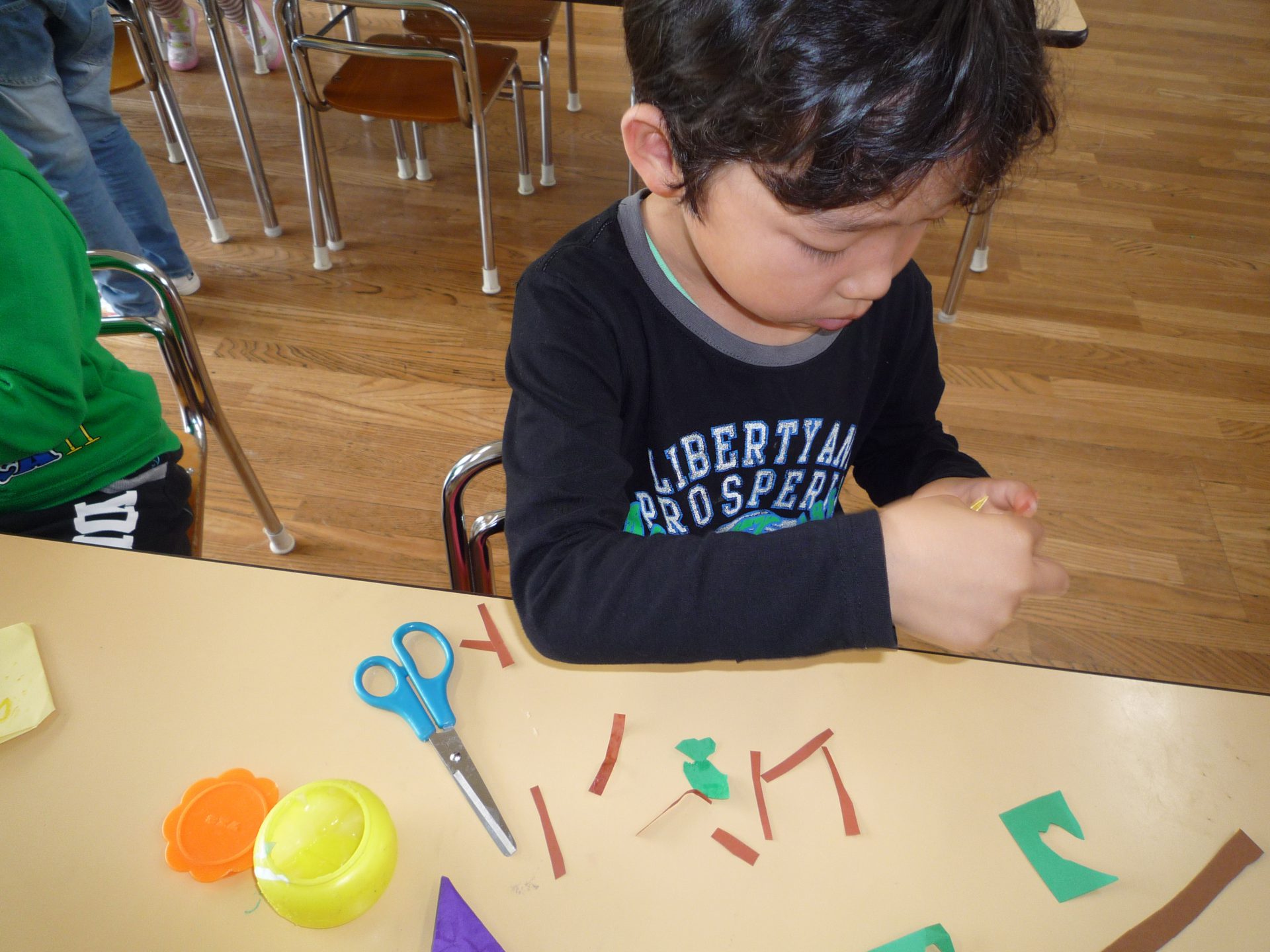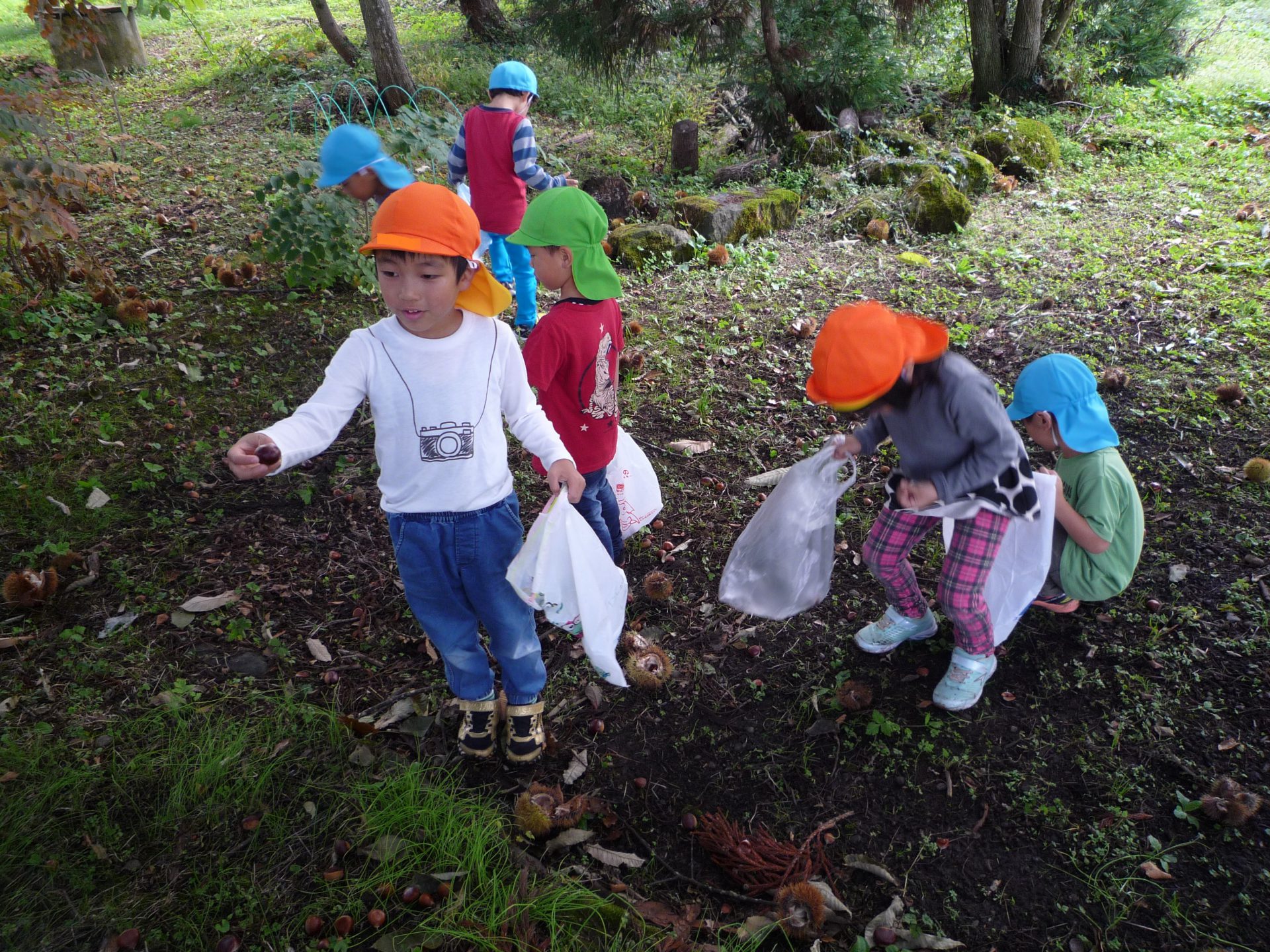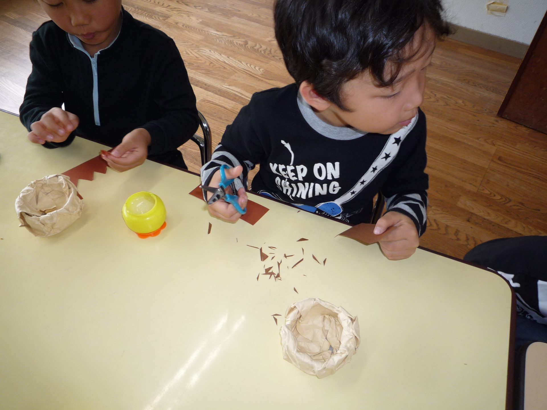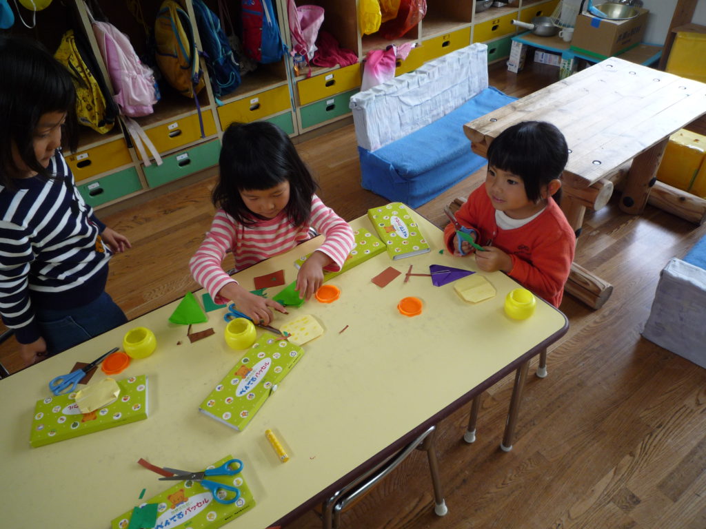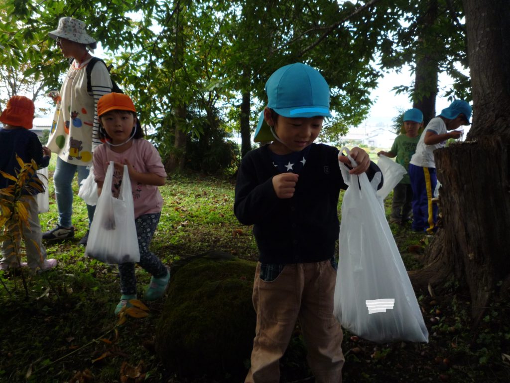 イガも作りました。細かい作業が苦手な子も「イガ尖ってた」と細かく切りながら夢中で作る姿がありました。